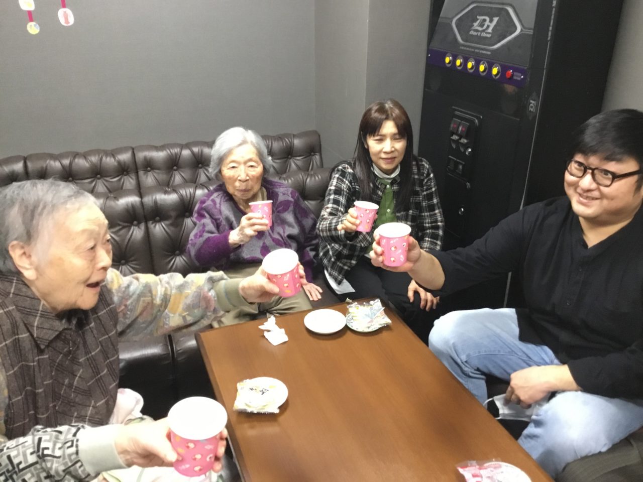 続いて、14時から別館スパ恒例の甘酒をふるまわせて頂きました。そして、歌い始めのカラオケ大会❣️