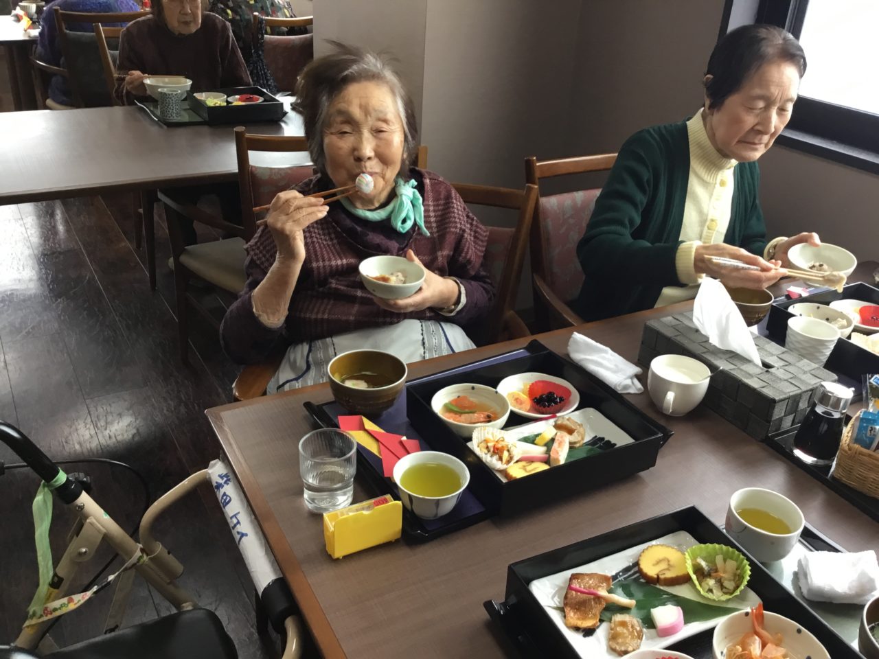静かな幕開けかと思いきや、昼食のおせち料理に皆さんの笑顔が弾けます。