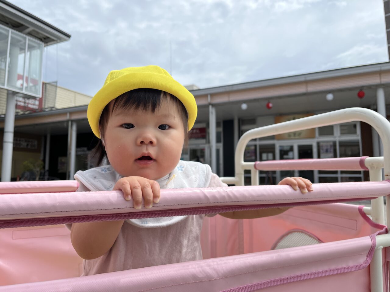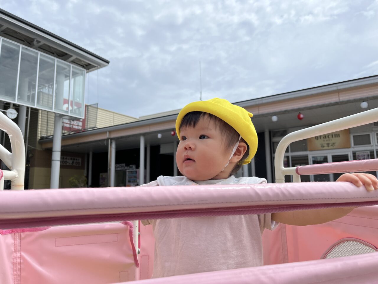 お散歩カーも、つかまり立ちで乗れるようになったよ?
