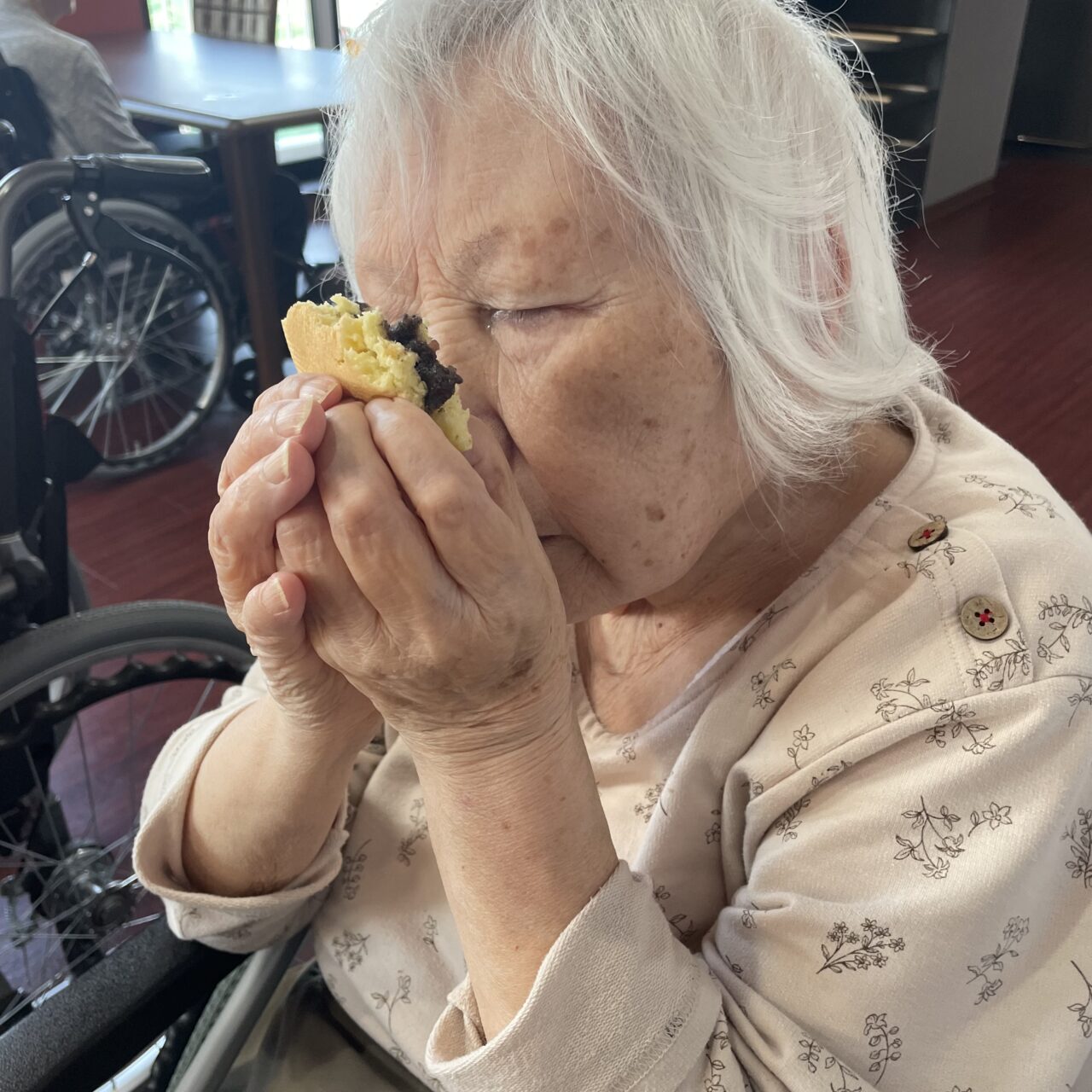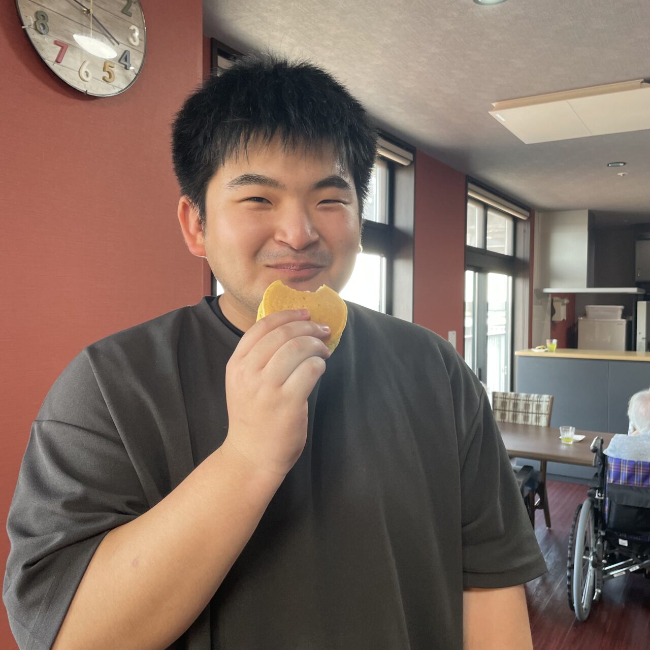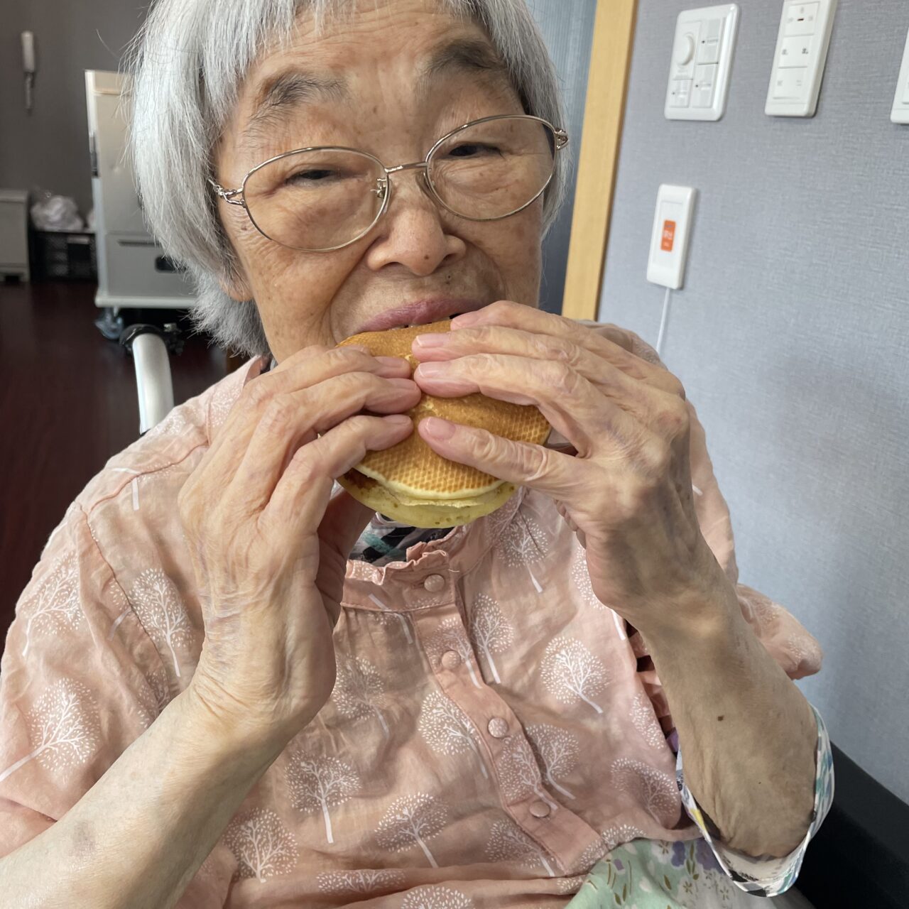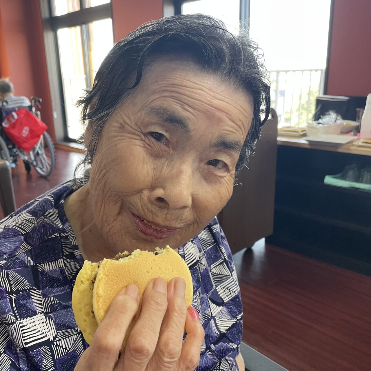 美味しそうなどら焼きでしょう????実はこれ…飯坂副施設長の手作りなのです!中のごまあんも飯坂副施設長のお手製??この日も暑く冷たいお茶も準備して、どら焼きパーティースタート??
