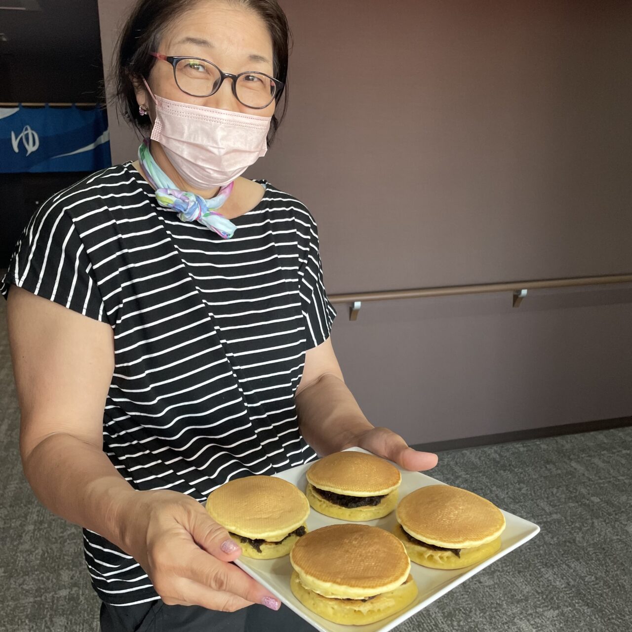 飯坂副施設長、どら焼きも作れるなんて❗️ごまあんも手作りなんて凄すぎます😋