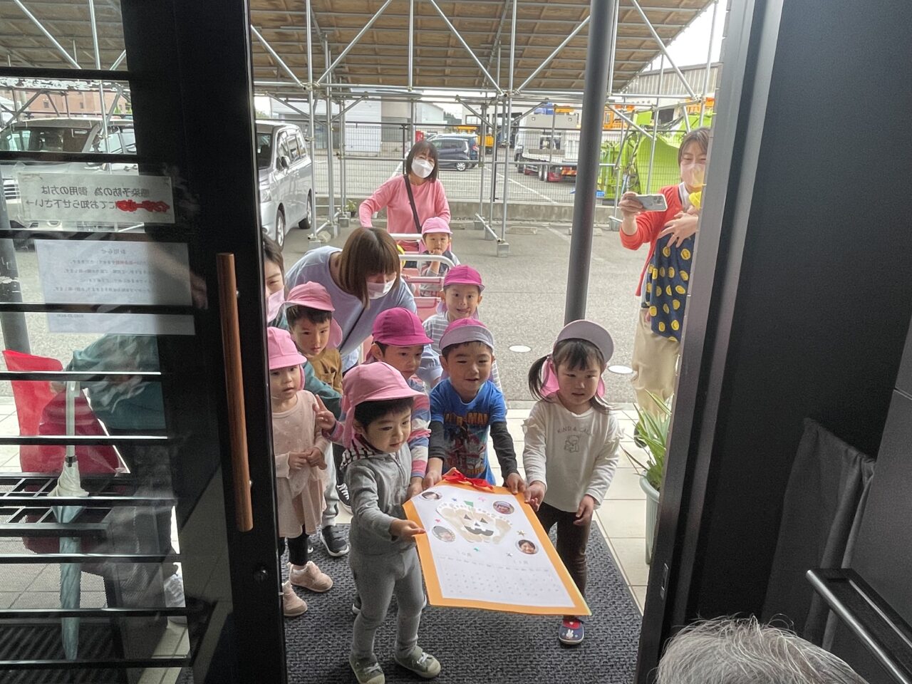 きらきら保育園の園児たちが敬老の日のプレゼントを持ってきてくださいました(^∇^)