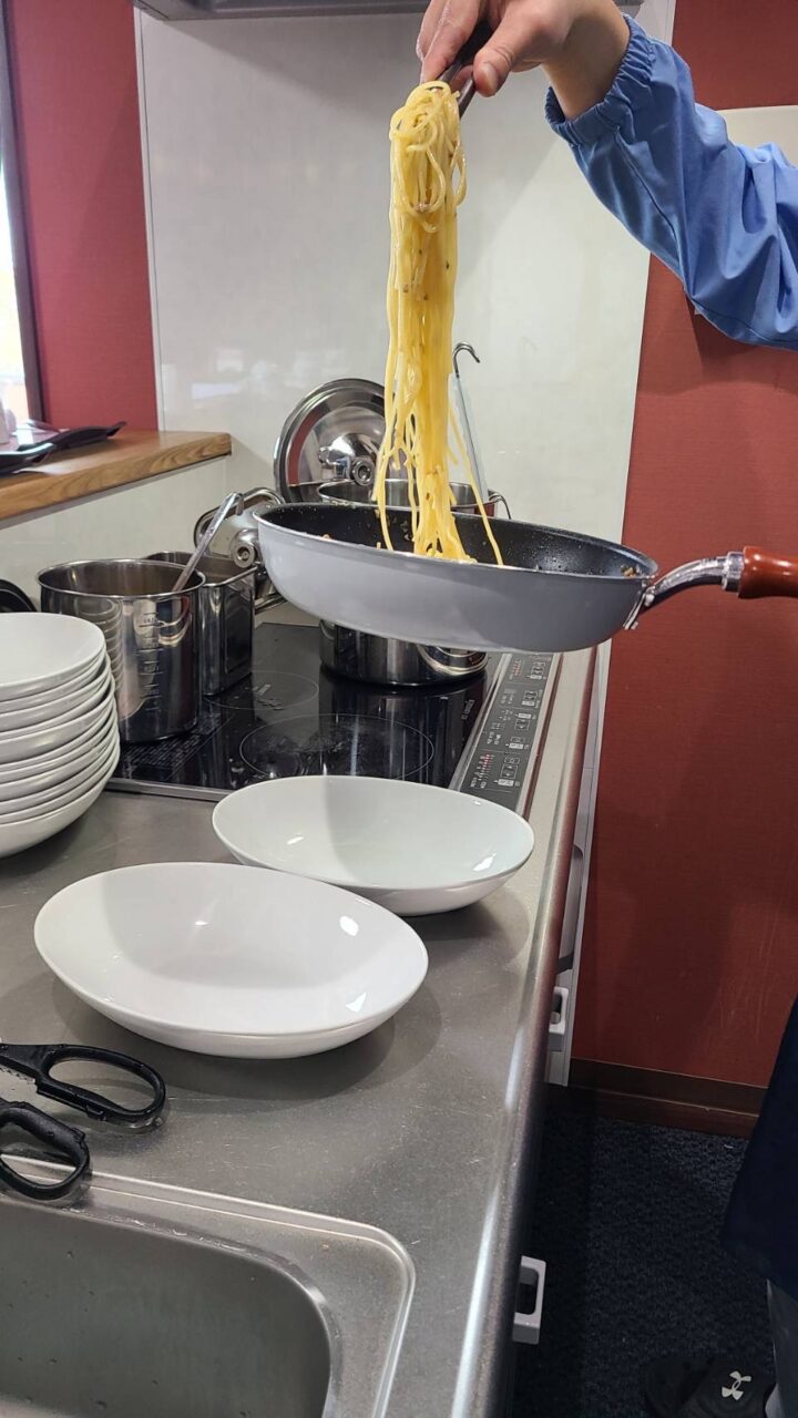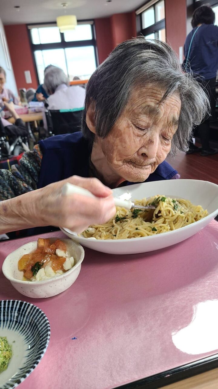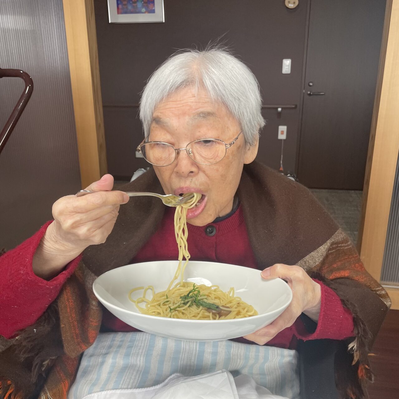 パスタソースは始めは洋風なものを考えておりましたが、パスタにはあまり馴染みがないご利用者の方々のため、食べやすいようにと和風ソースのものをご用意いたしました?