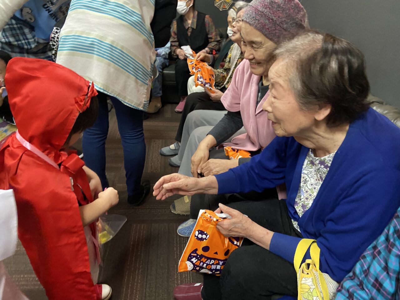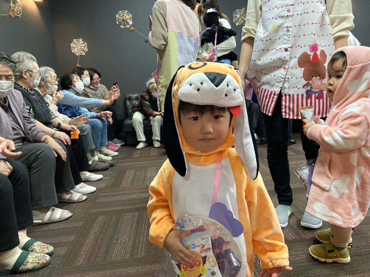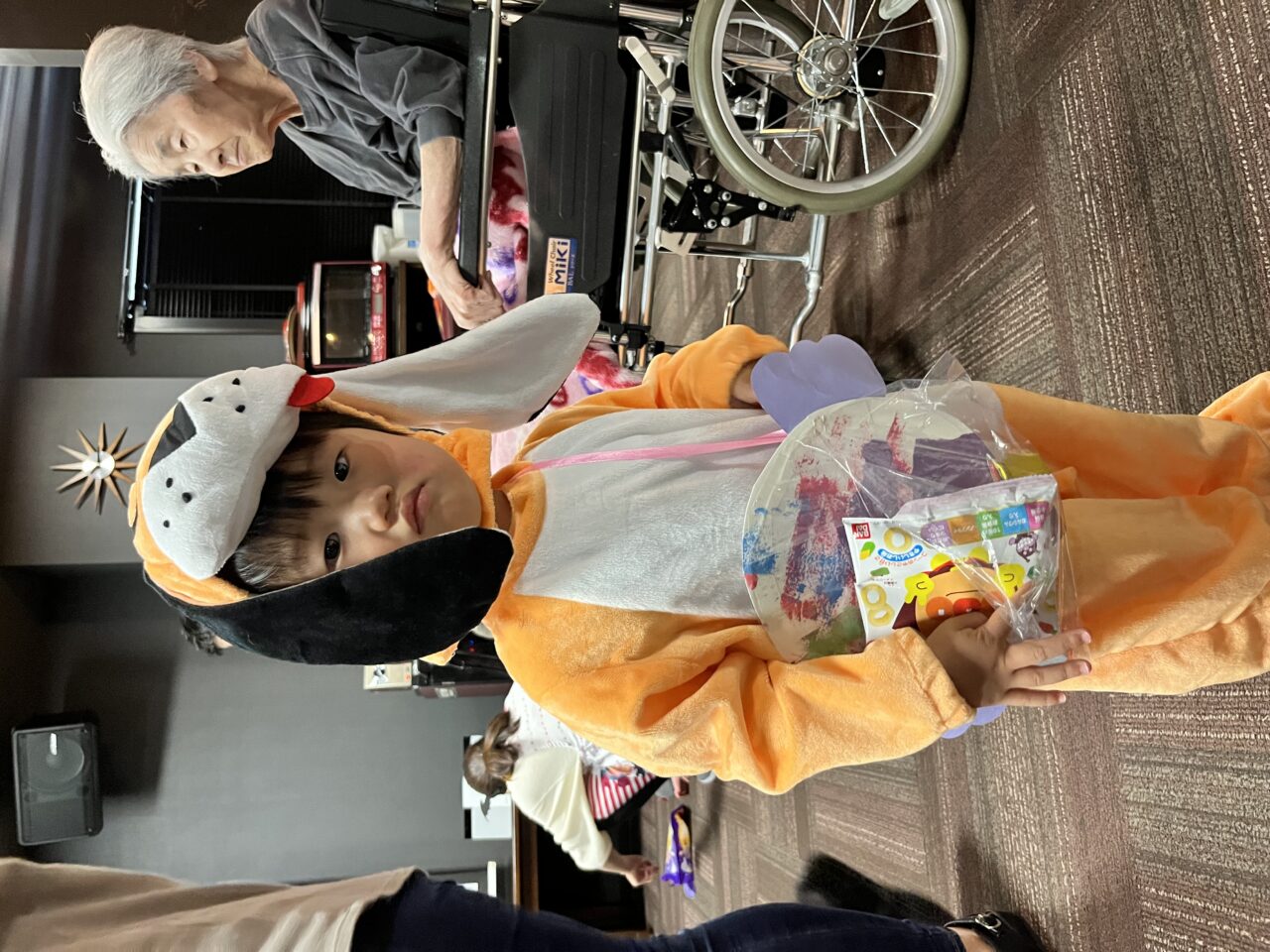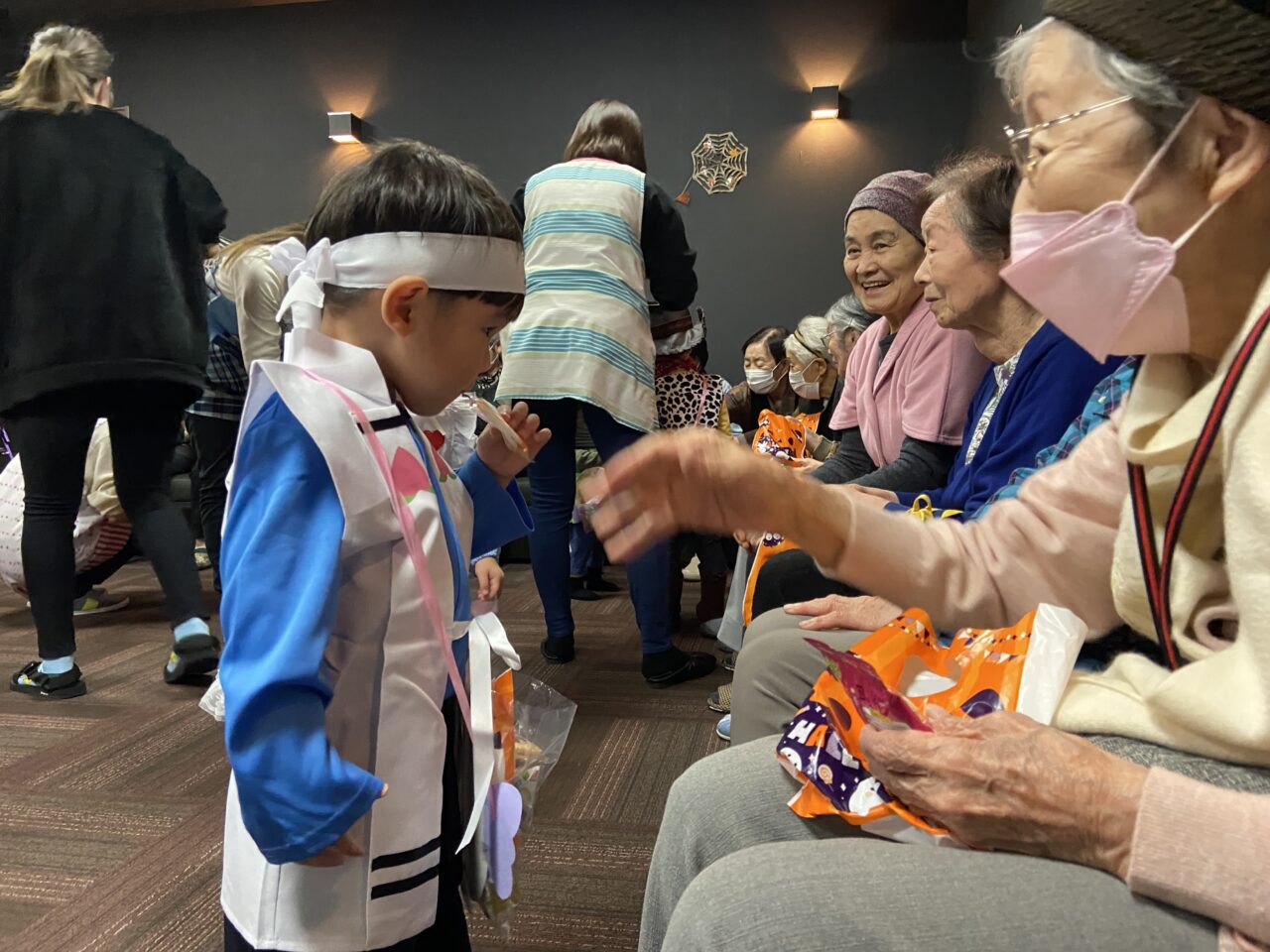 また、桃太郎の衣装を着ているRくんのまわりでは利用者さんが「もーもたろさん、ももたろさん?」の歌を歌ってくださり、大盛り上がりでしたよ??