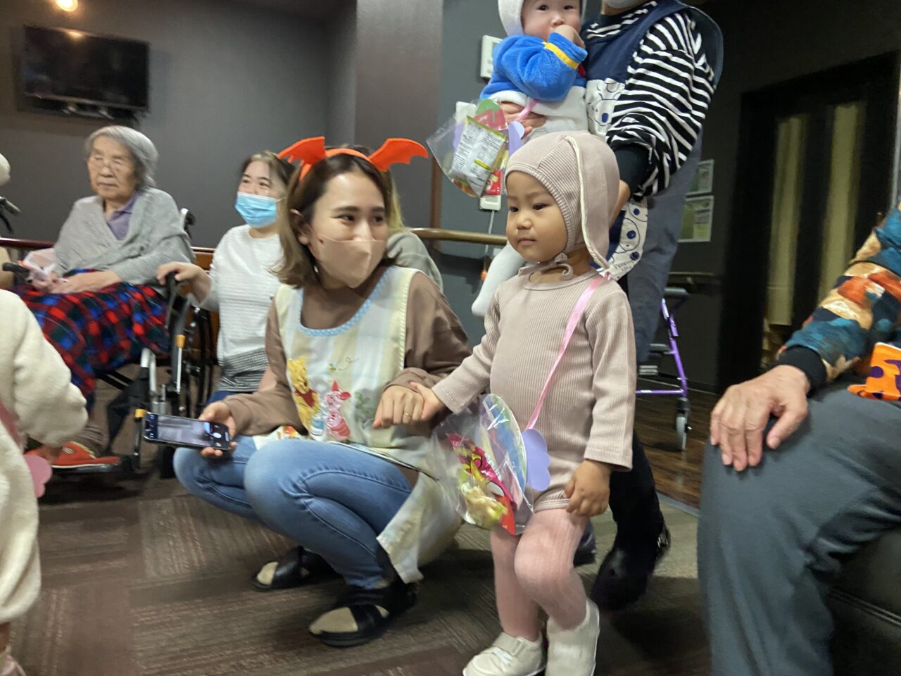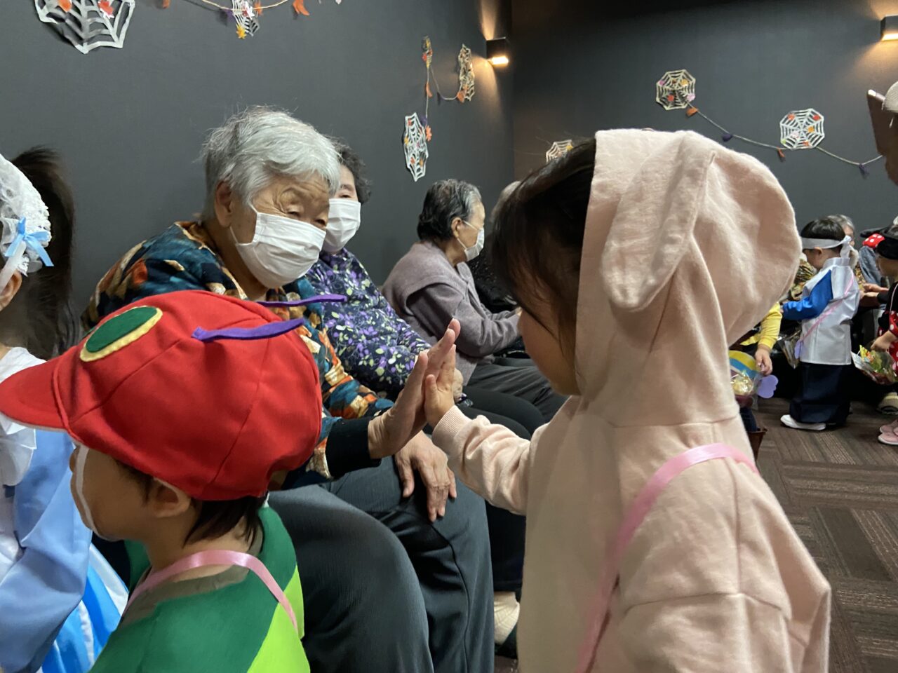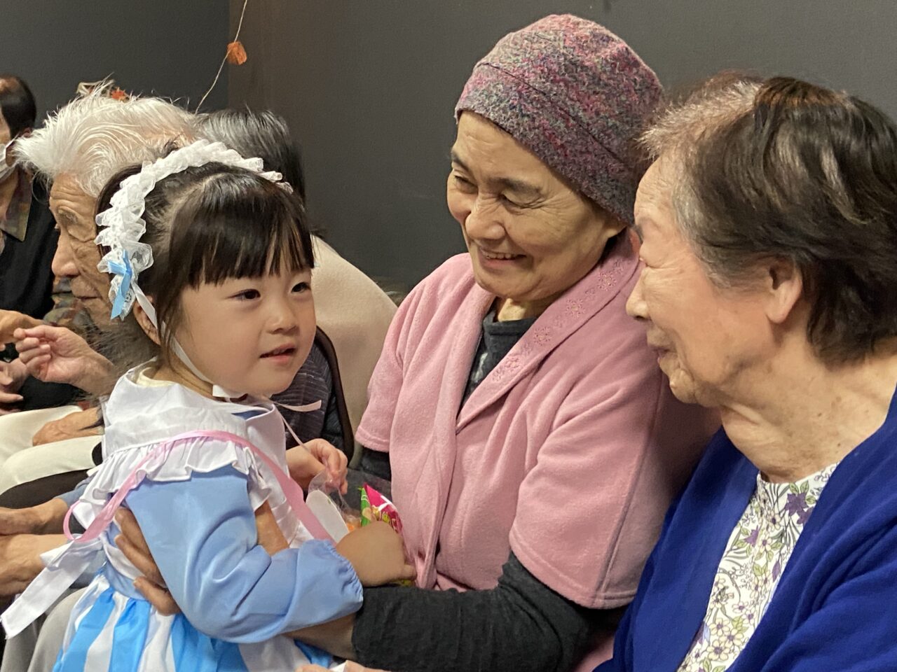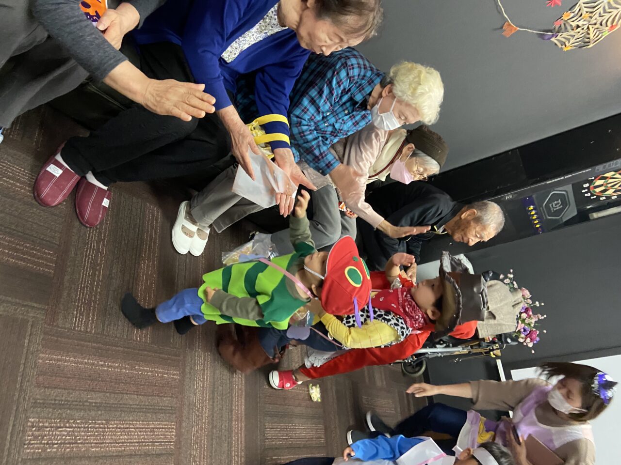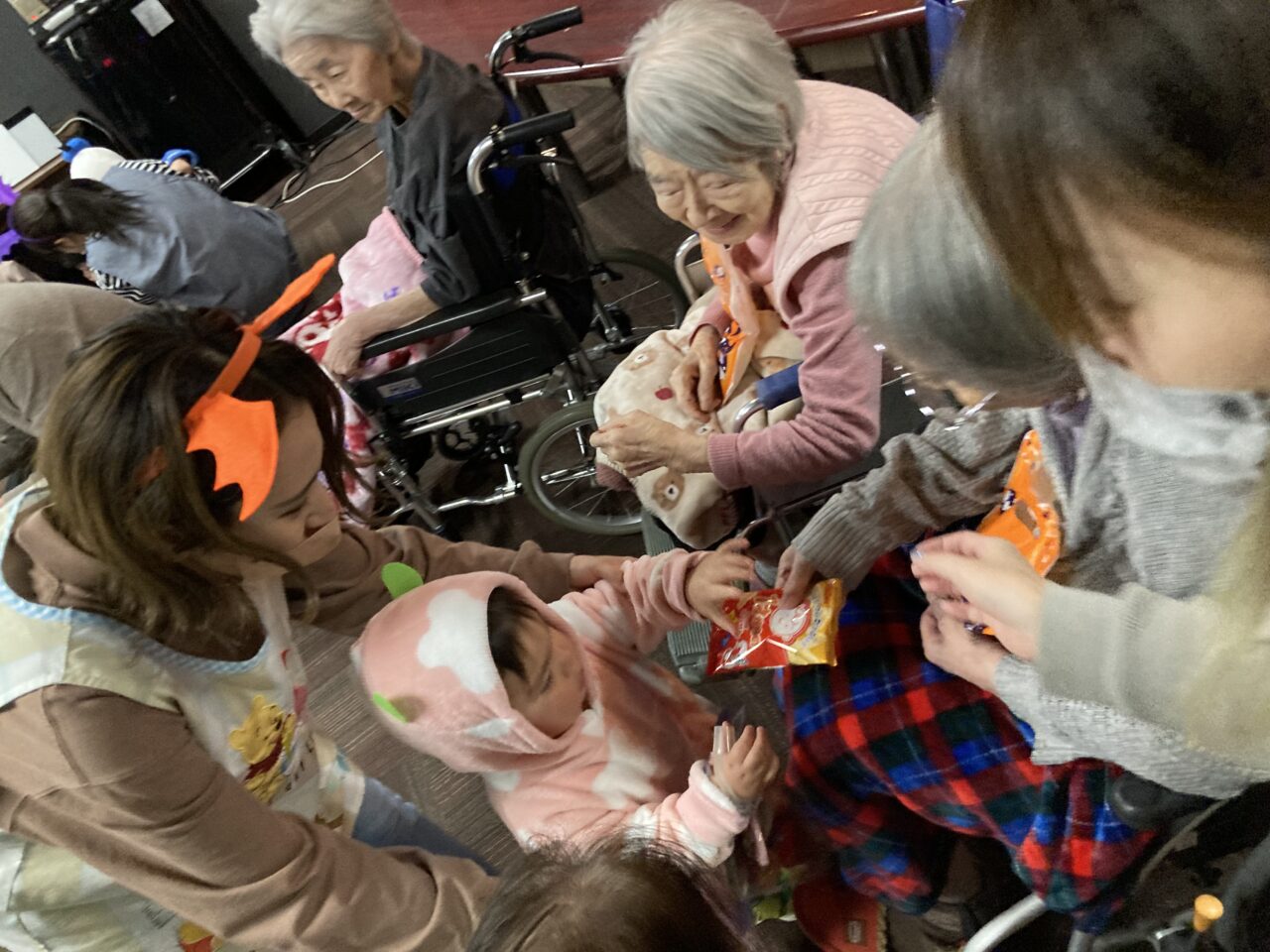 また、桃太郎の衣装を着ているRくんのまわりでは利用者さんが「もーもたろさん、ももたろさん?」の歌を歌ってくださり、大盛り上がりでしたよ??