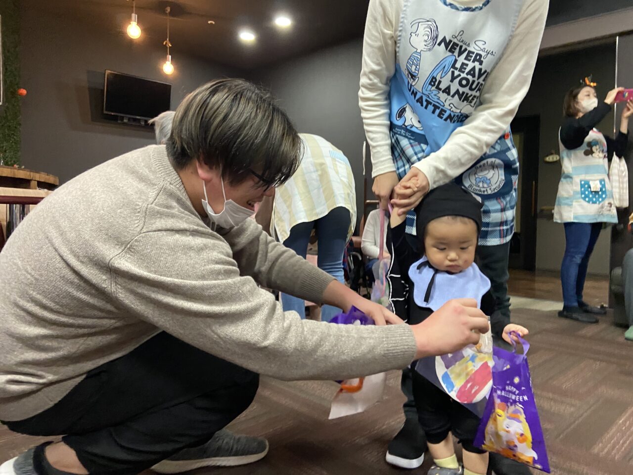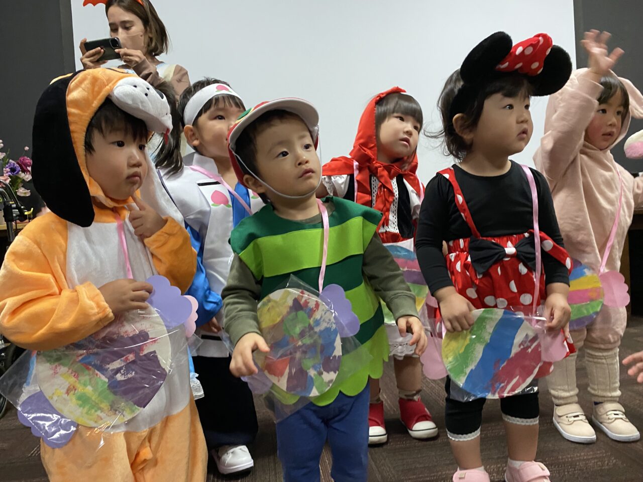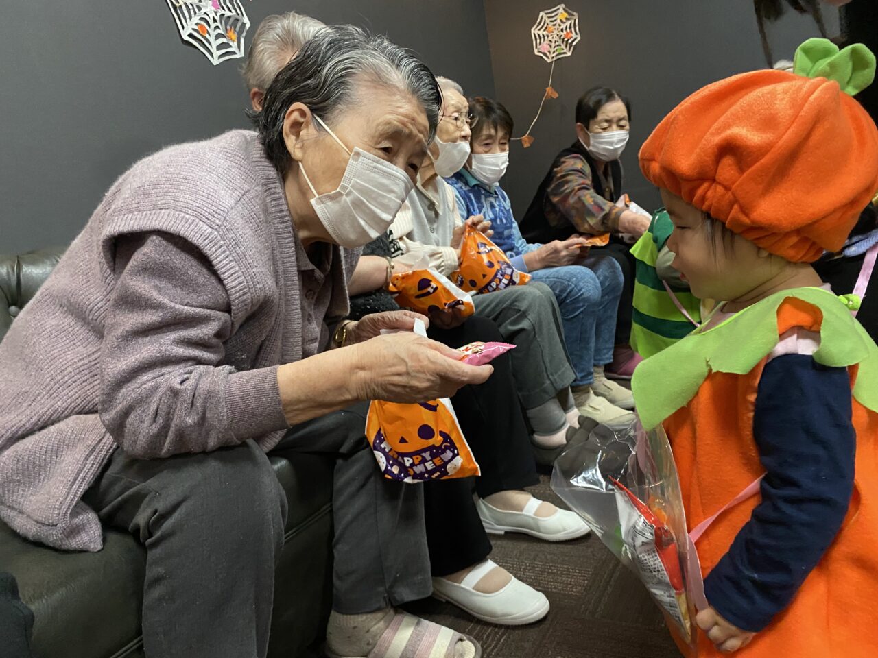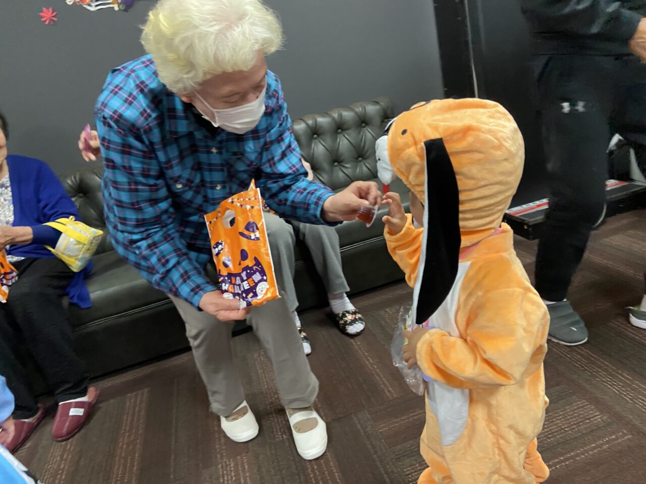 また、桃太郎の衣装を着ているRくんのまわりでは利用者さんが「もーもたろさん、ももたろさん?」の歌を歌ってくださり、大盛り上がりでしたよ??