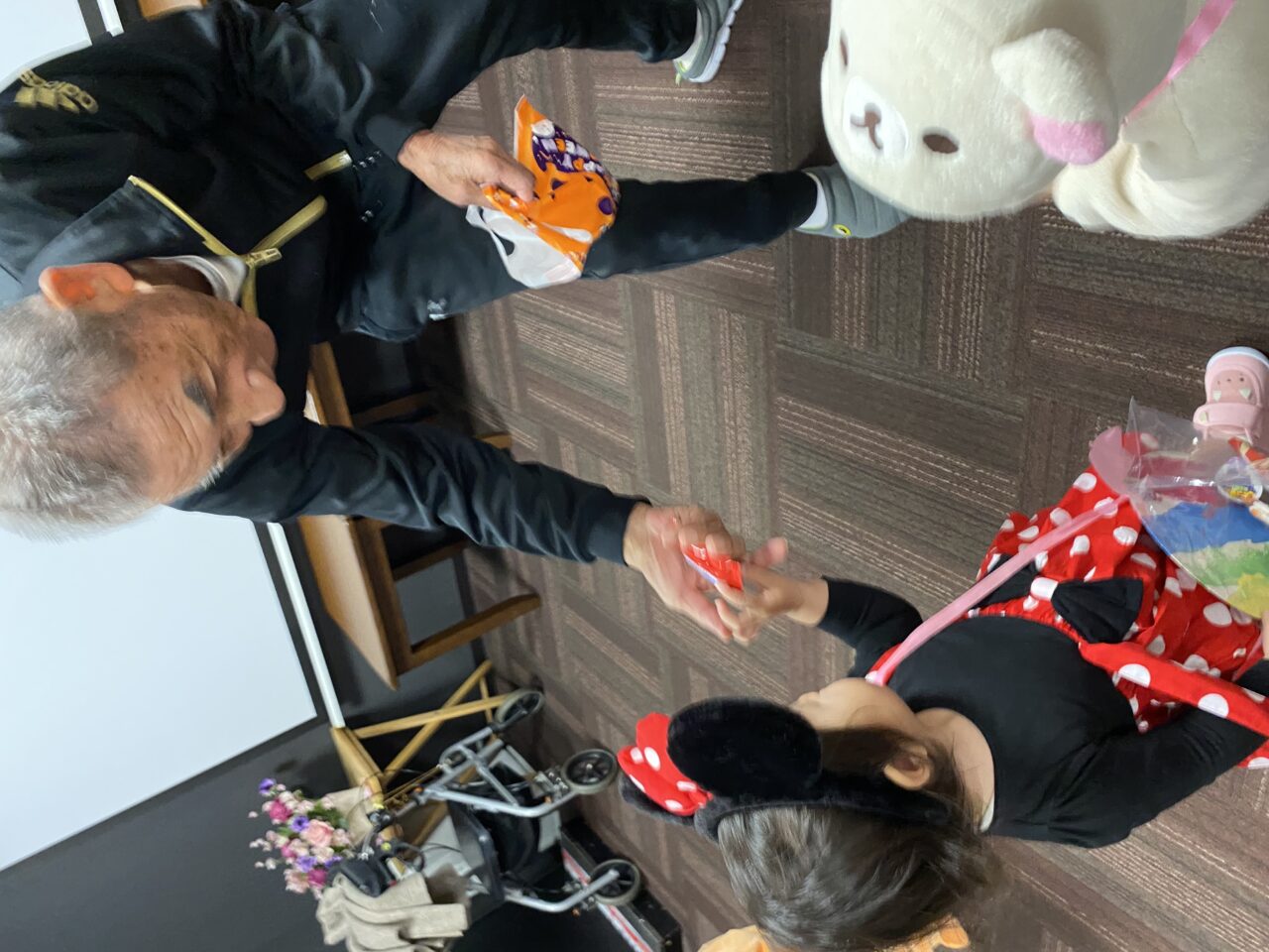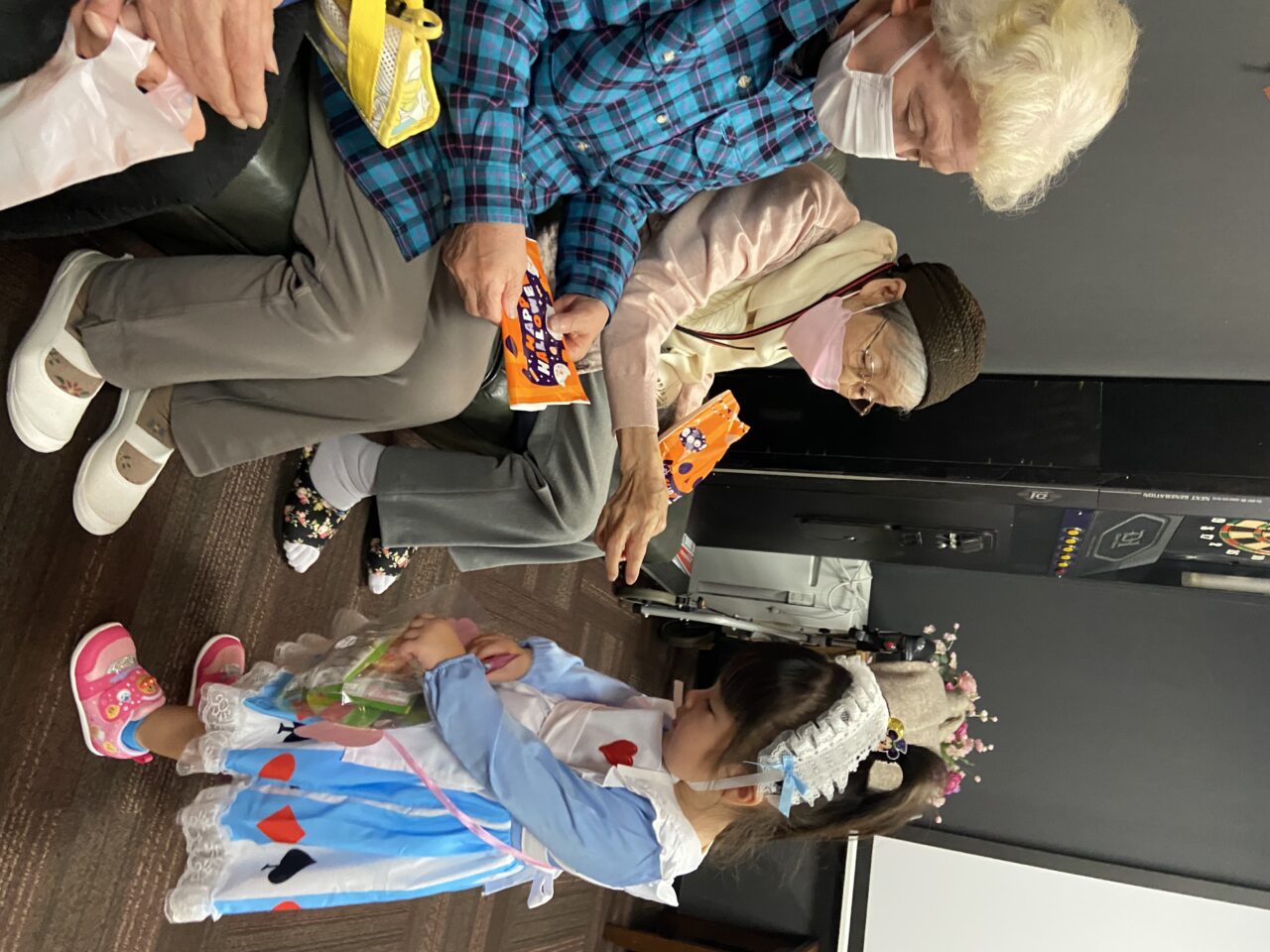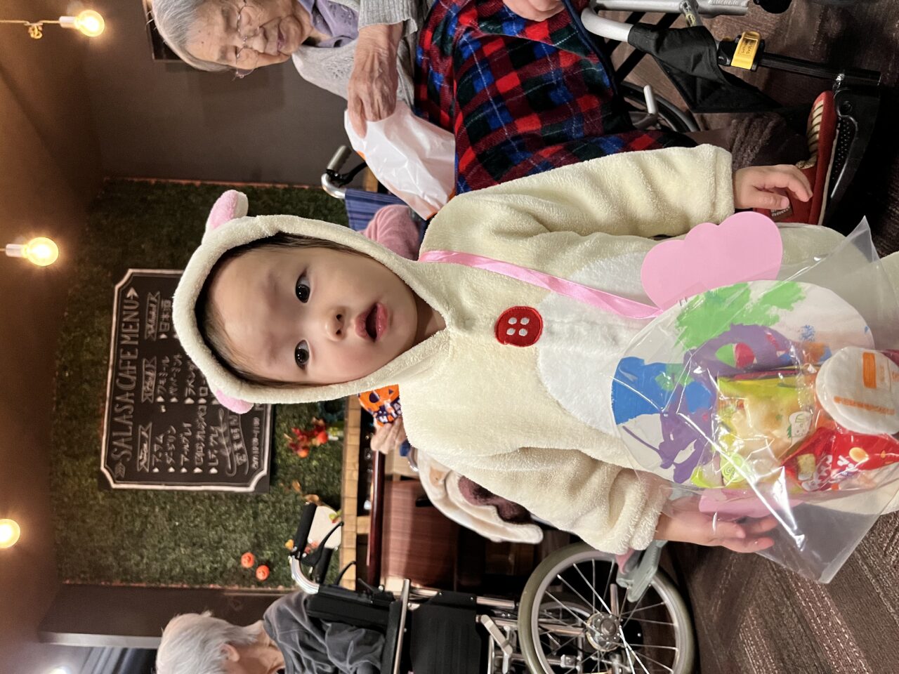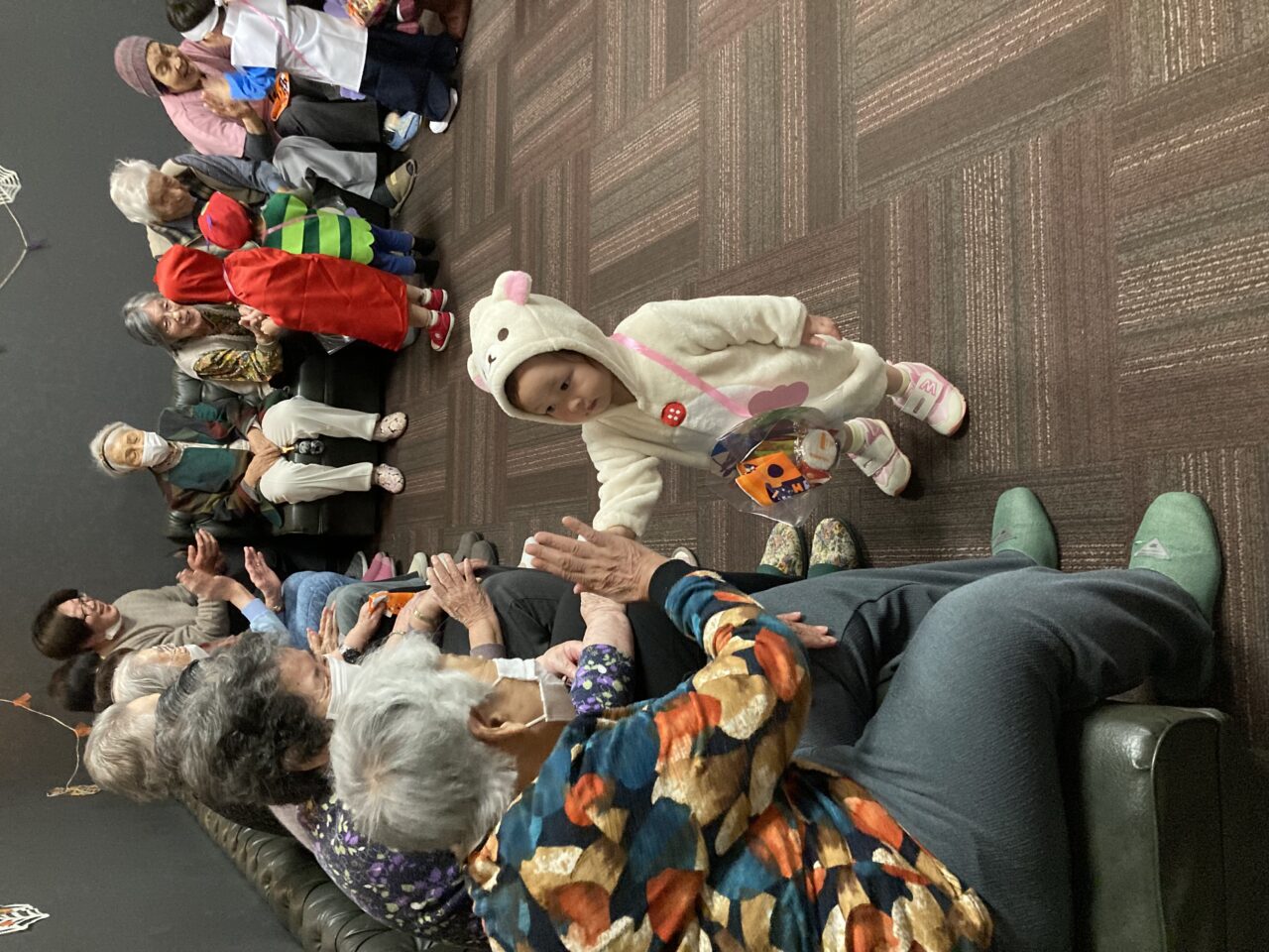 ラウンジへ着くと、利用者さんパートナーさんから「可愛い〜!」「あや〜、めんけごど〜?」と嬉しい声が✨