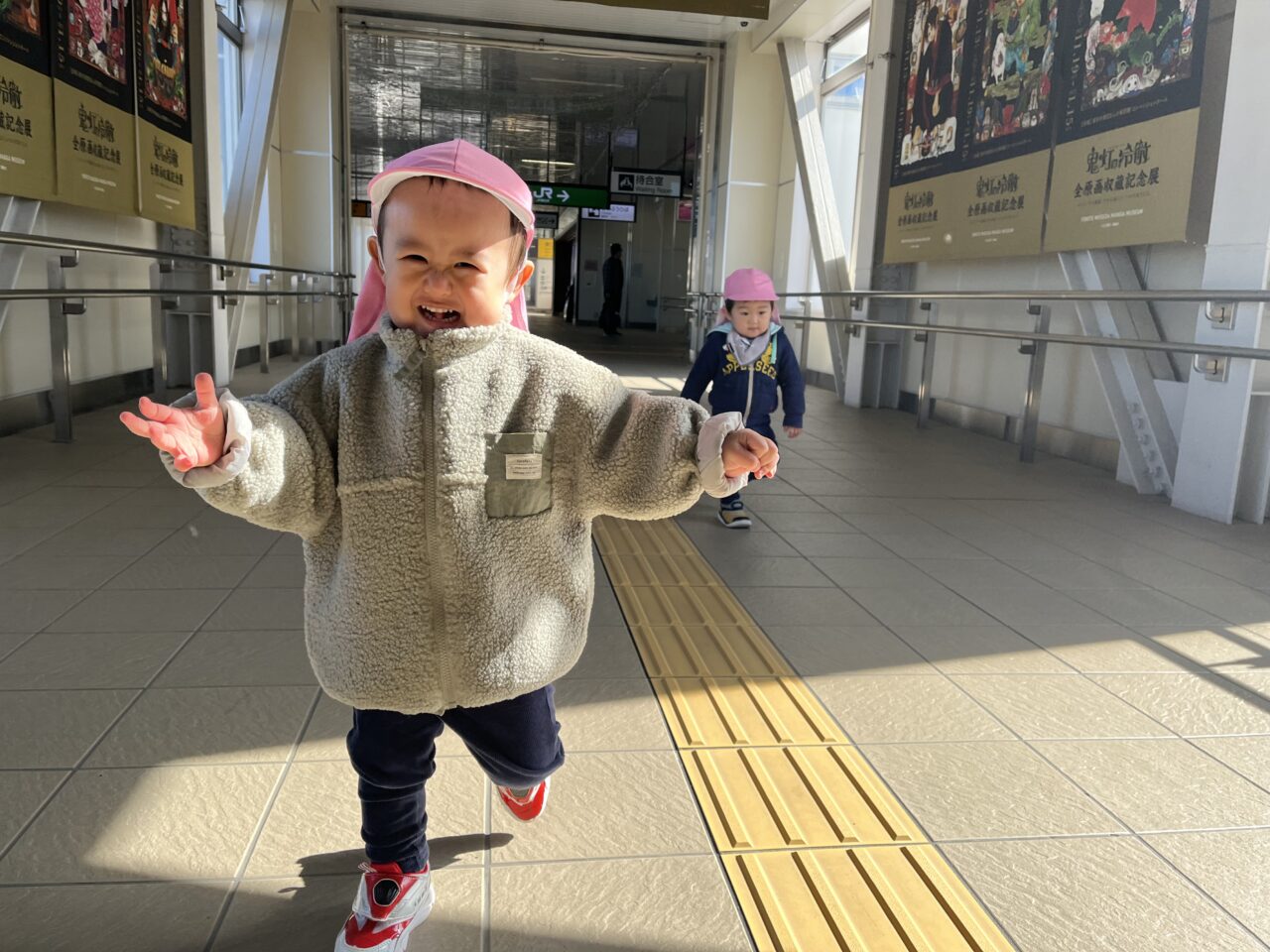 ?駅では連絡通路で楽しみながら、電車が到着するのを待ちますよ?