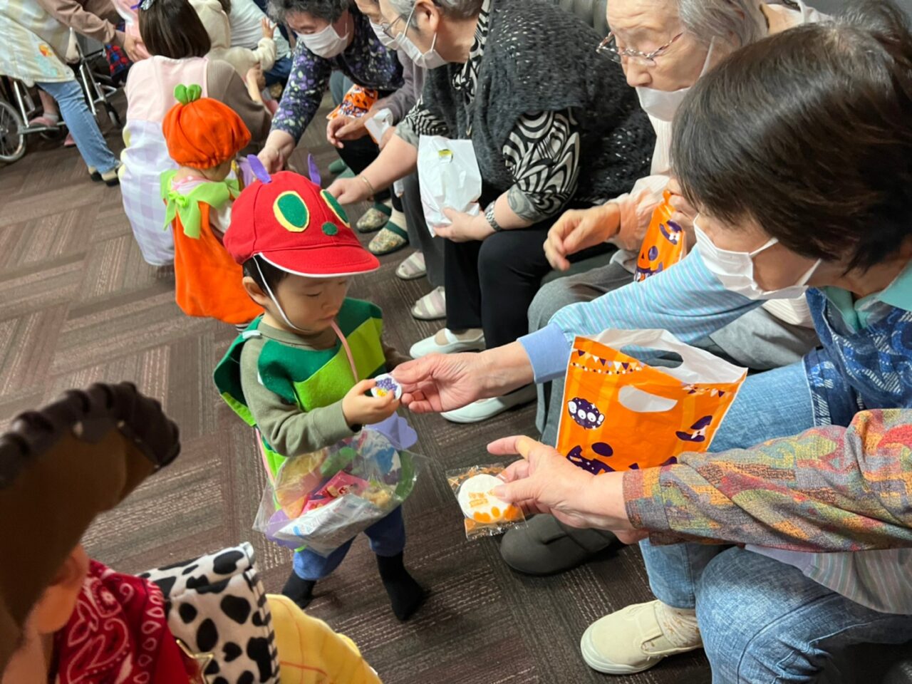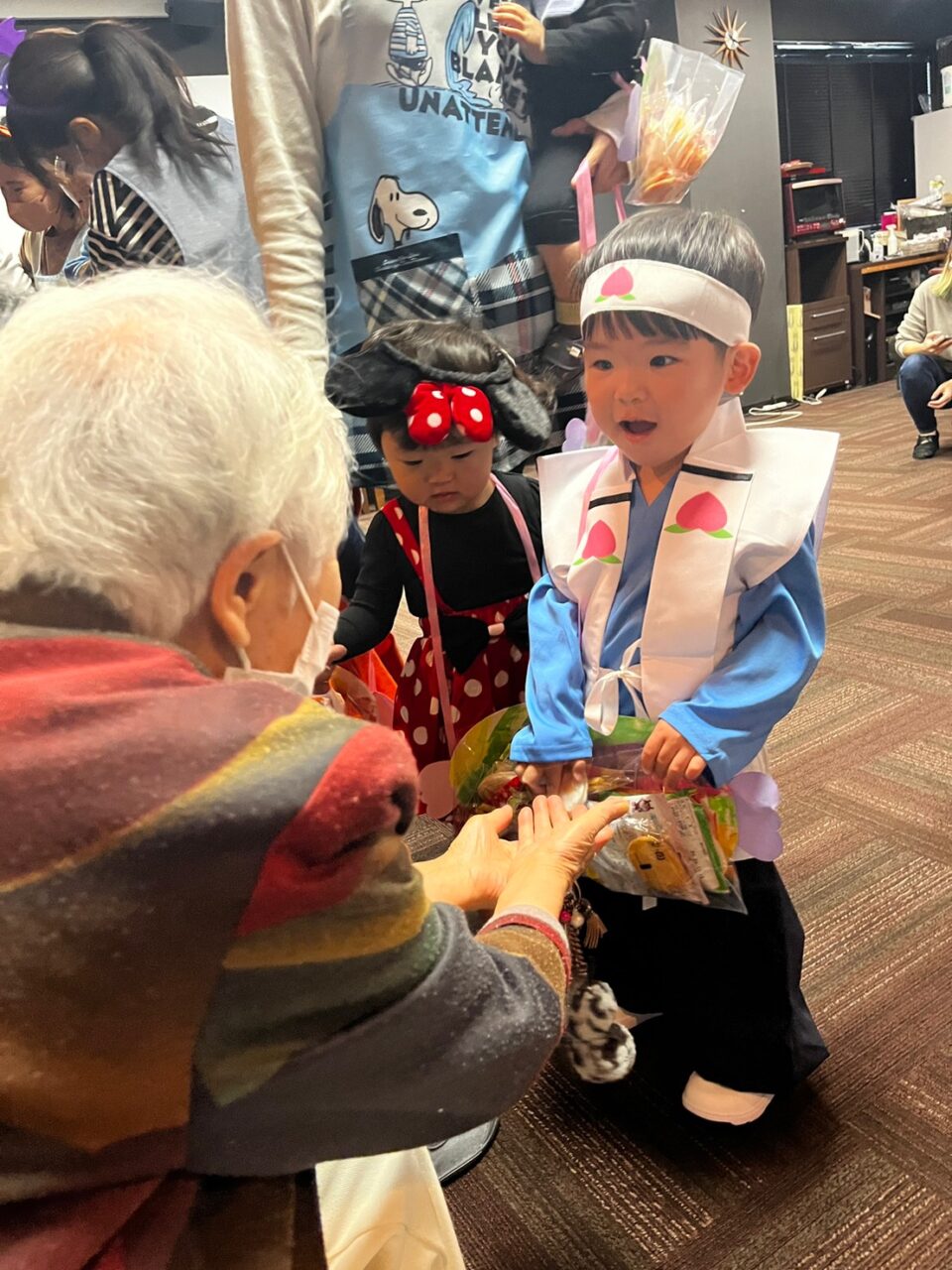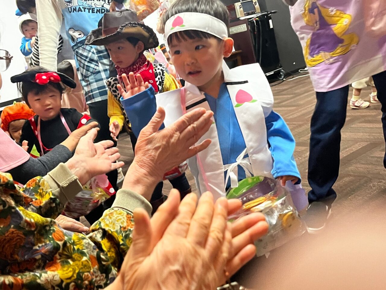 「お菓子をくれないといたずらしちゃうぞー?」とお菓子をもらい来て?ハイタッチ?
