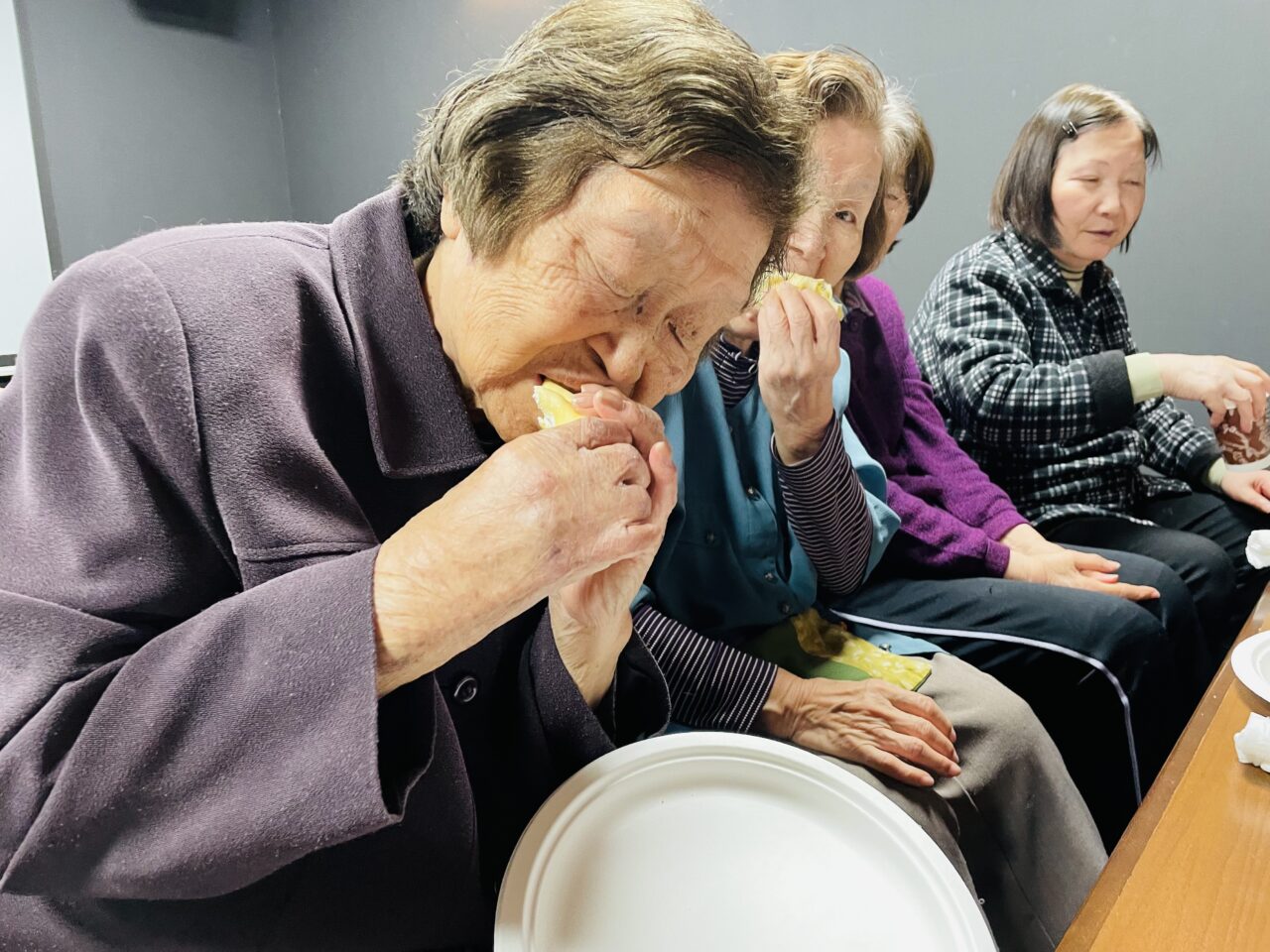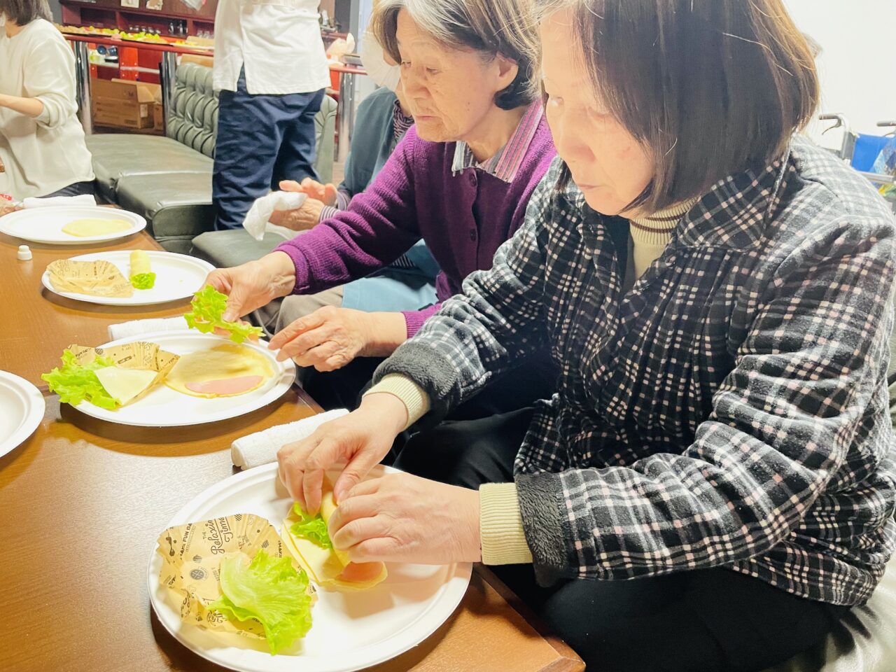 午後からは、ラウンジにお集まり頂き、クレープでお茶会を開催しました。