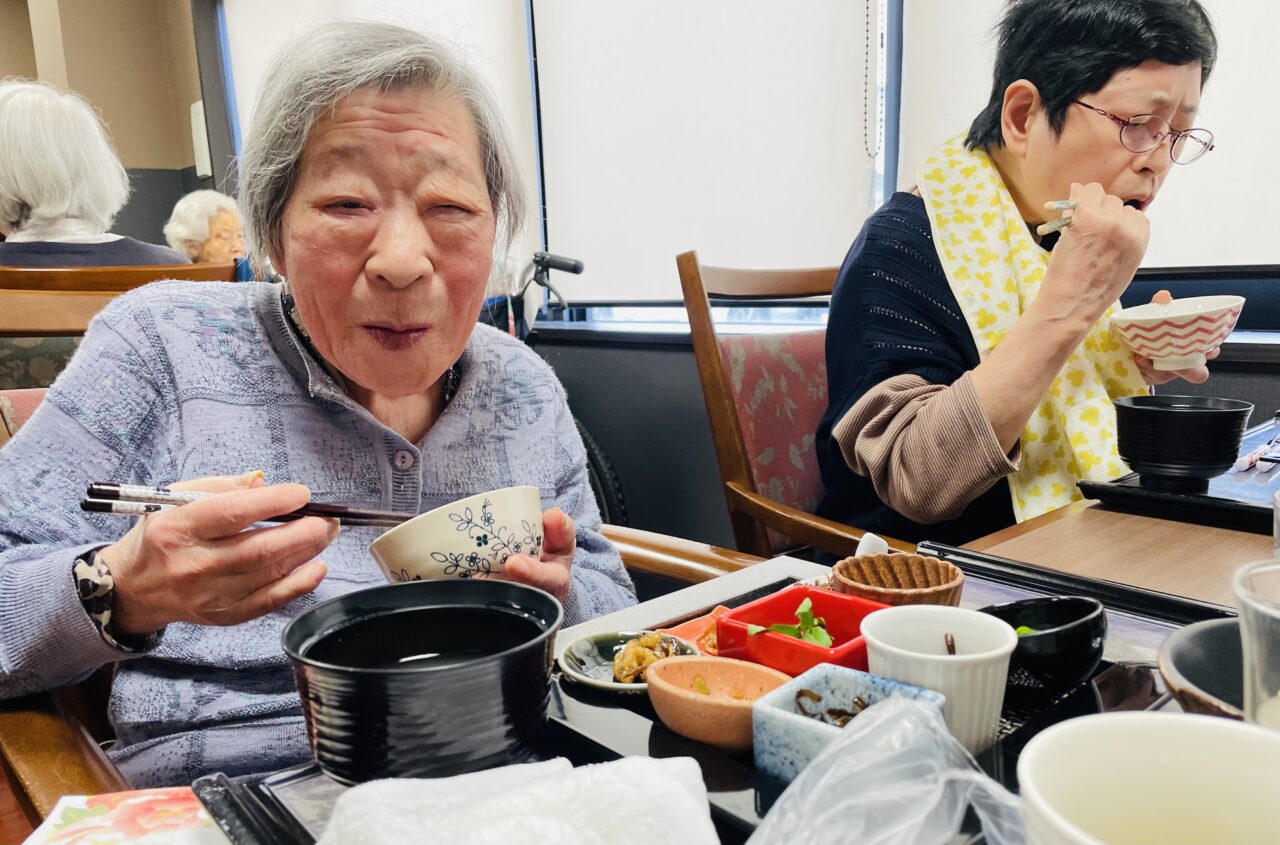 「ハタギだ!大好き?」「ちりめん山椒も合うな〜」等と会話しながらこの笑顔です❣️