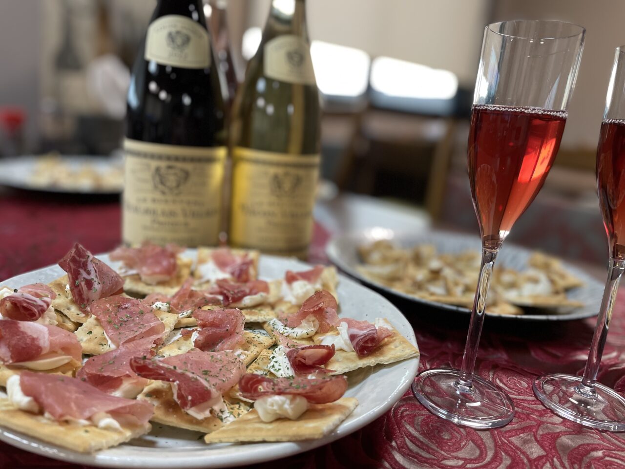 皆さんにも堪能して頂きたくワインだけでなくノンアルコールのスパークリングワインや職員お手製のカナッペや干し柿を提供させて頂きました?