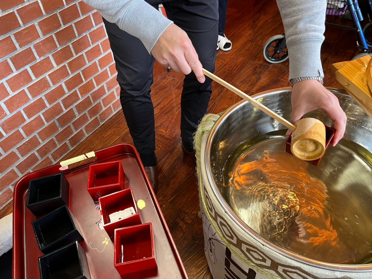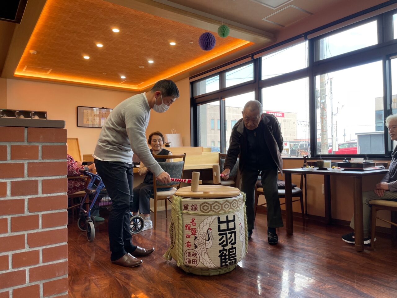 また、さらさ大曲開設後、1番に入居されたTさんと打川施設長で鏡開きを行いました❗️