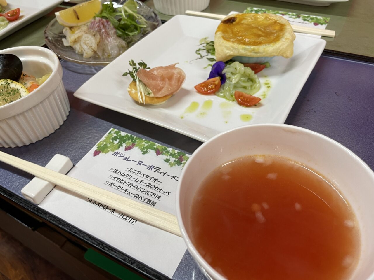 夕食では17日にボジョレーヌーボ解禁‼️という事でボジョレーとワインに合う食事をご用意させていただきました❗️