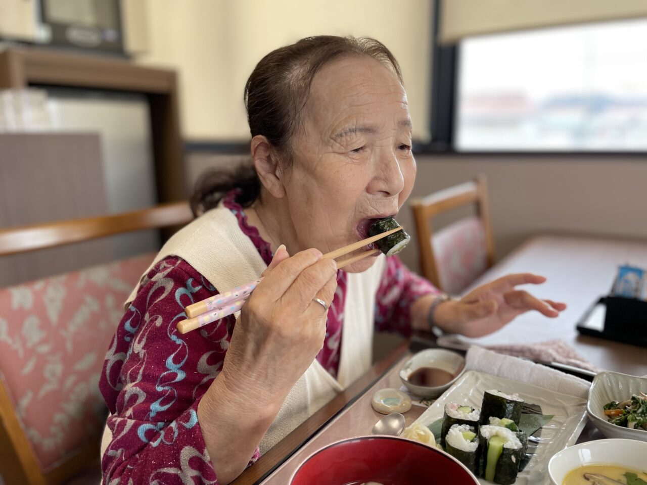 皆さん久しぶりのお寿司に笑顔が溢れて、あちらこちらから「美味しいね?」「お吸い物良い出汁で出るな?」「全部美味しい?」と嬉しいお言葉が飛び交っています?