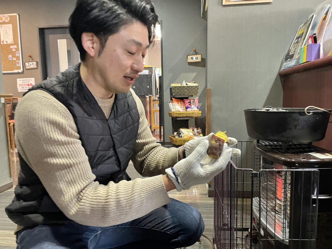 先日、湯沢秋田ライオンズクラブの方よりいただいたさつまいもをストーブの上でじっくり、じっくり焼いていたのです?!!