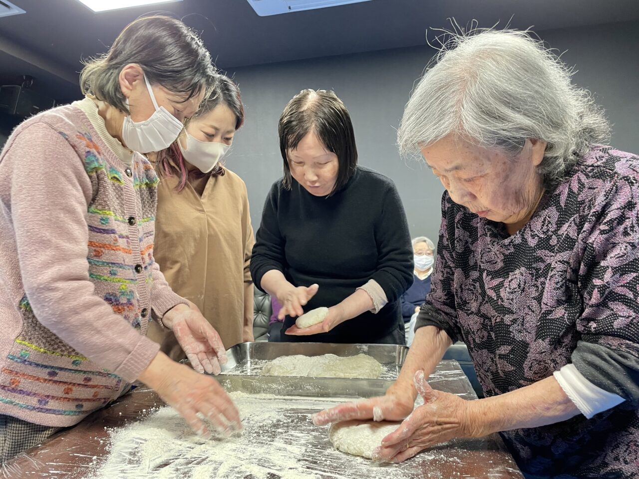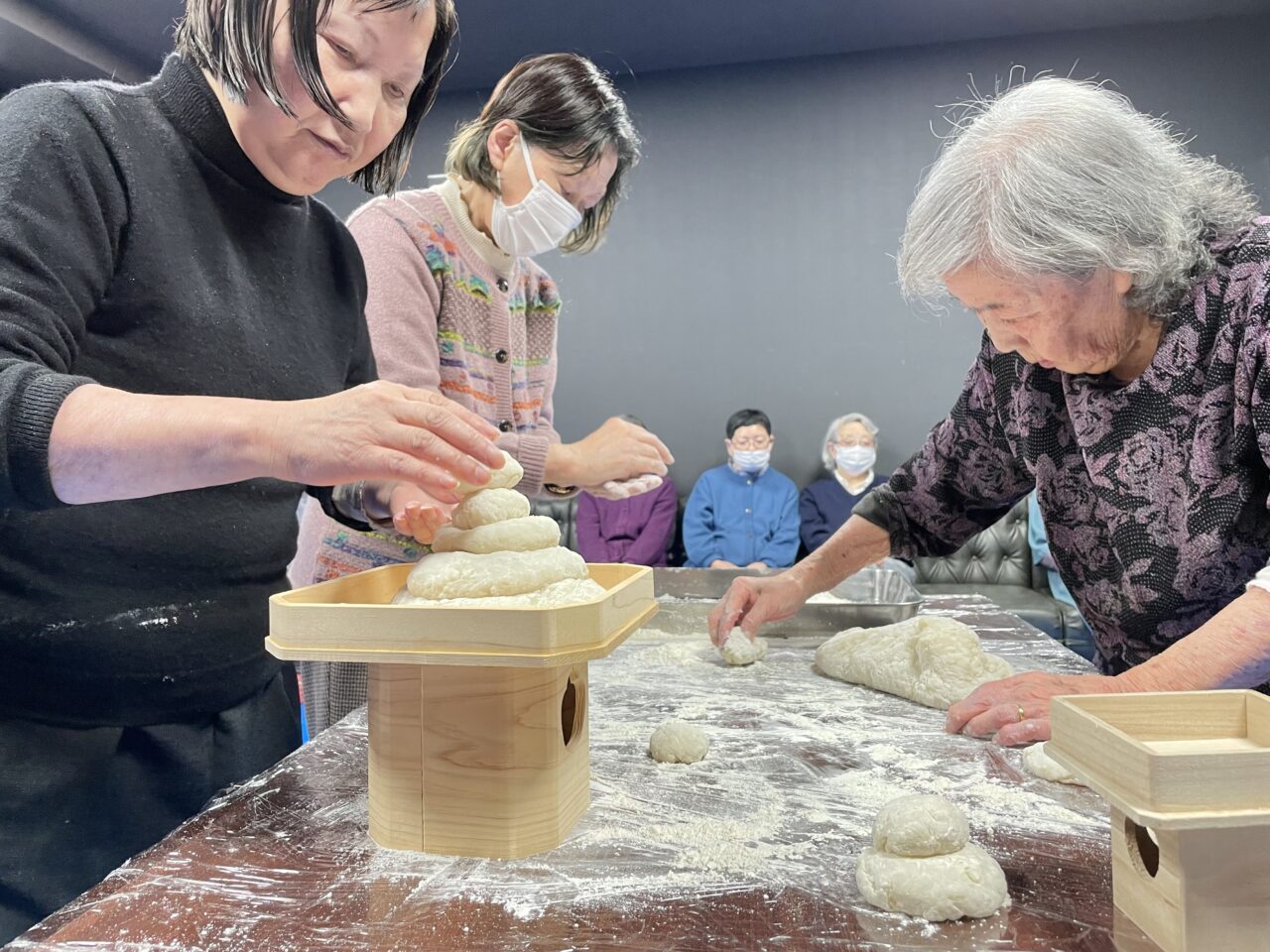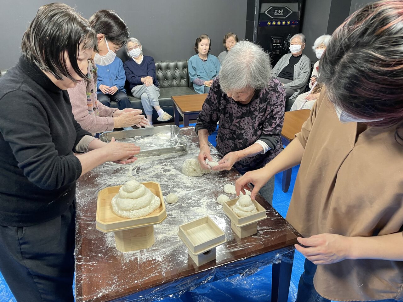 みなさん、柔らかいお餅をきれいに丸く整えていきます♪