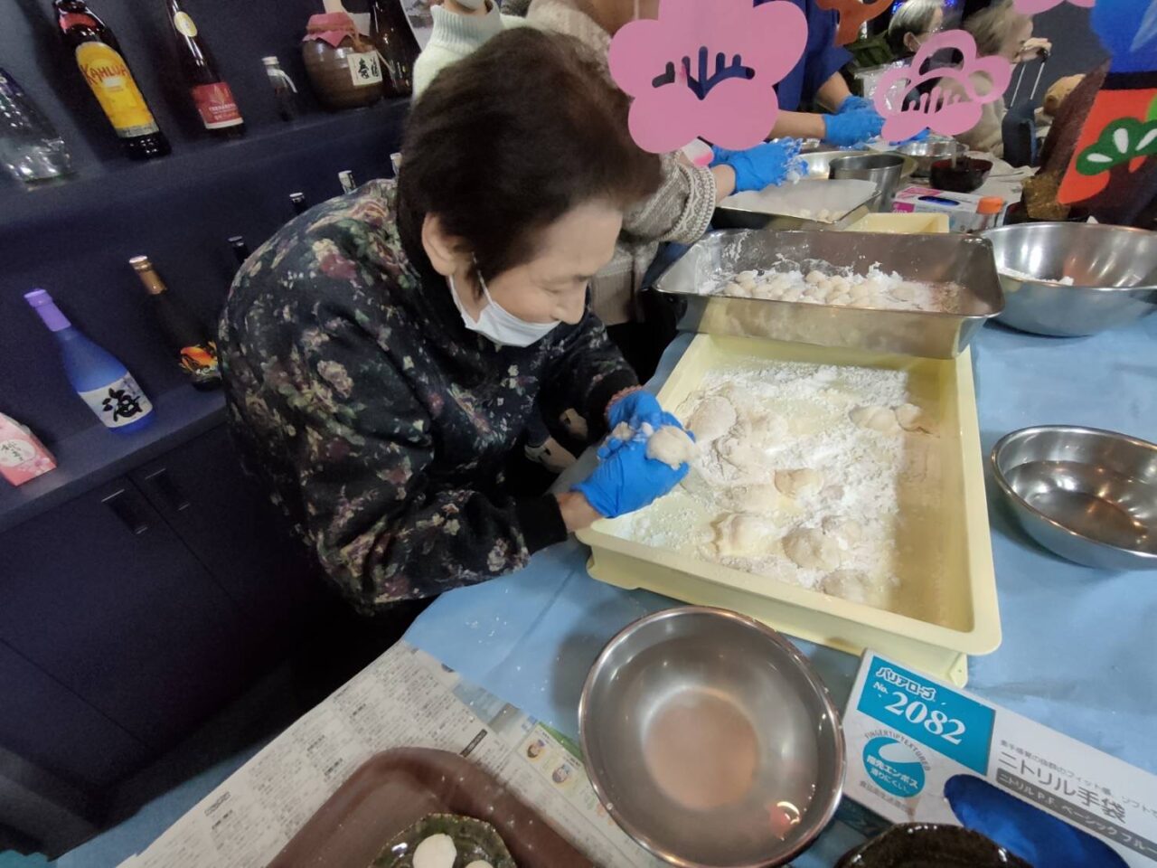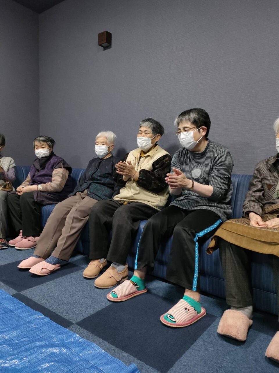 なかなか上手に出来ず、見かねた利用者さんが手伝ってくださいました??