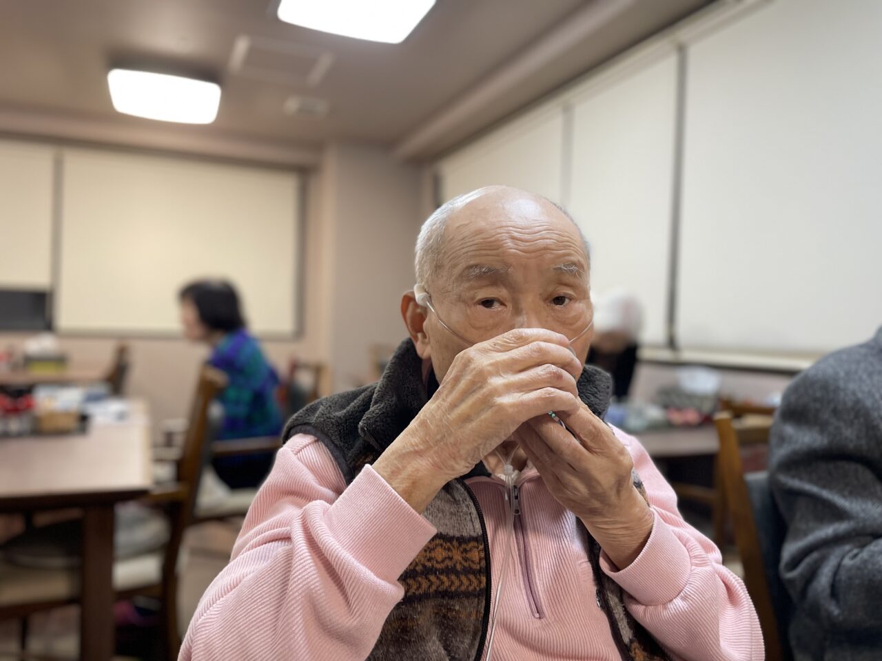 「先ずは食べるより飲むべった?」と笑いながら飲み始める男性利用者さん達(๑>◡<๑)笑