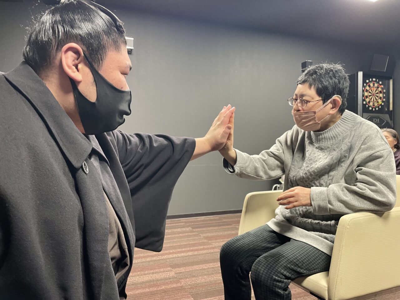 居室で『手のひら相撲』を開催し見事優勝しました笑