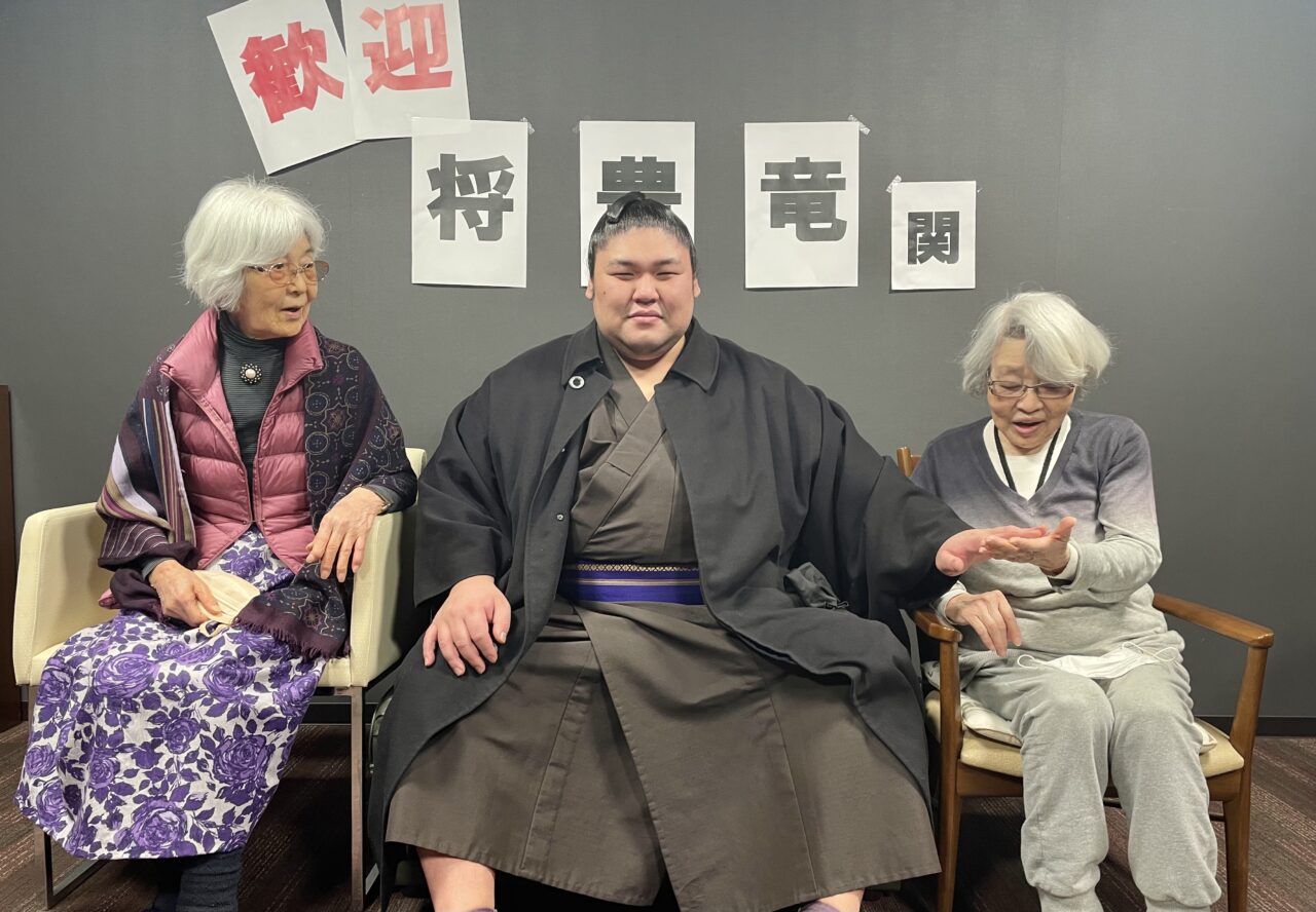 「あら!わざわざ来てけだの!?」「嬉しい〜!!」「私ね、小さい頃からお相撲見るの好きだから会えて嬉しい」と、居室のみなさんもとても喜ばれていました?⤴︎⤴︎