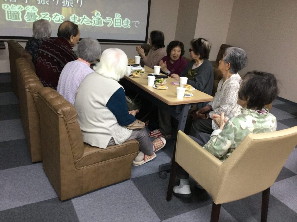 歌が大好きなOさんは十八番の演歌がかかると喜んでマイクを握り「川の流れのように」や「2人酒」を熱唱??