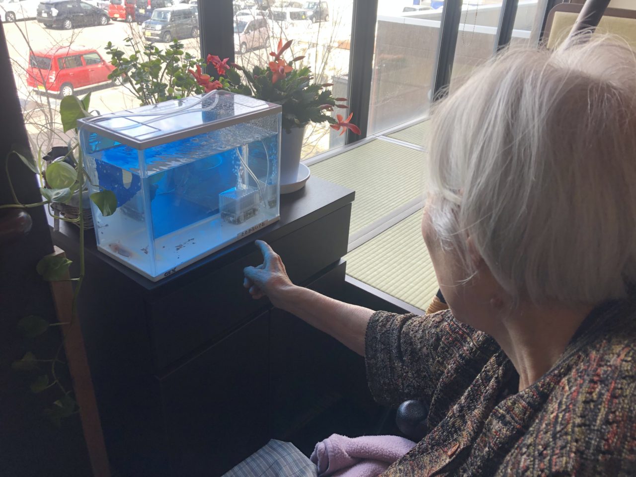 愛くるしいウーパールーパーの姿とそれに見惚れていらっしゃる利用者さんのご様子から、こちらまでほっこりとした温かい気持ちになりました!次回のブログも楽しみにしています!