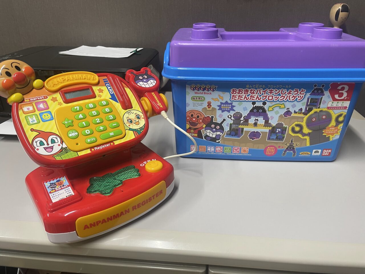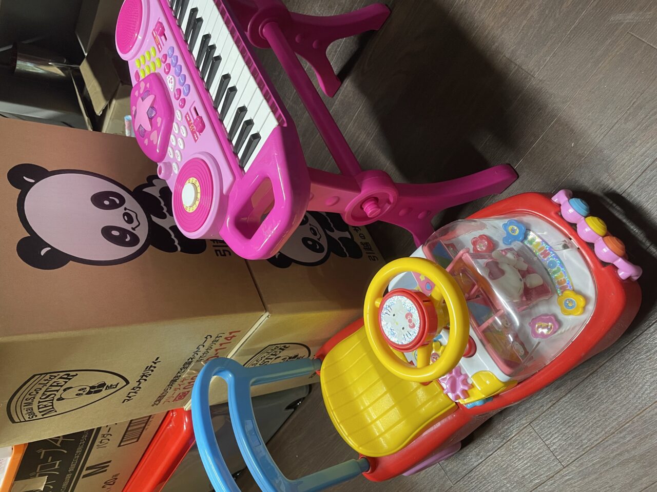 次はおもちゃコーナーです?おままごとセットや赤ちゃん向けの手遊びおもちゃ、知育おもちゃなど色んな種類がありますが数点だけ紹介します?