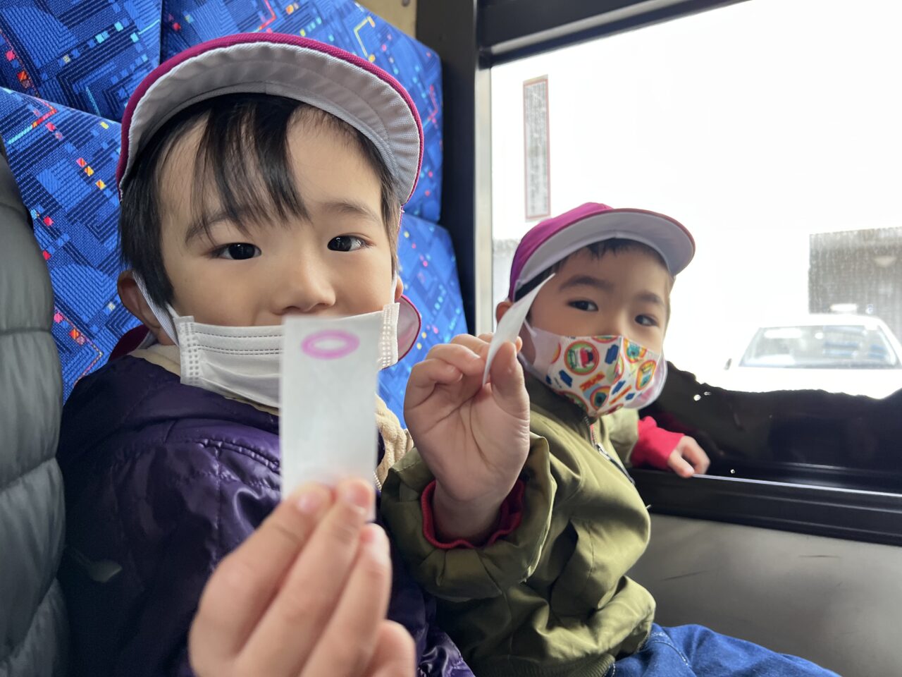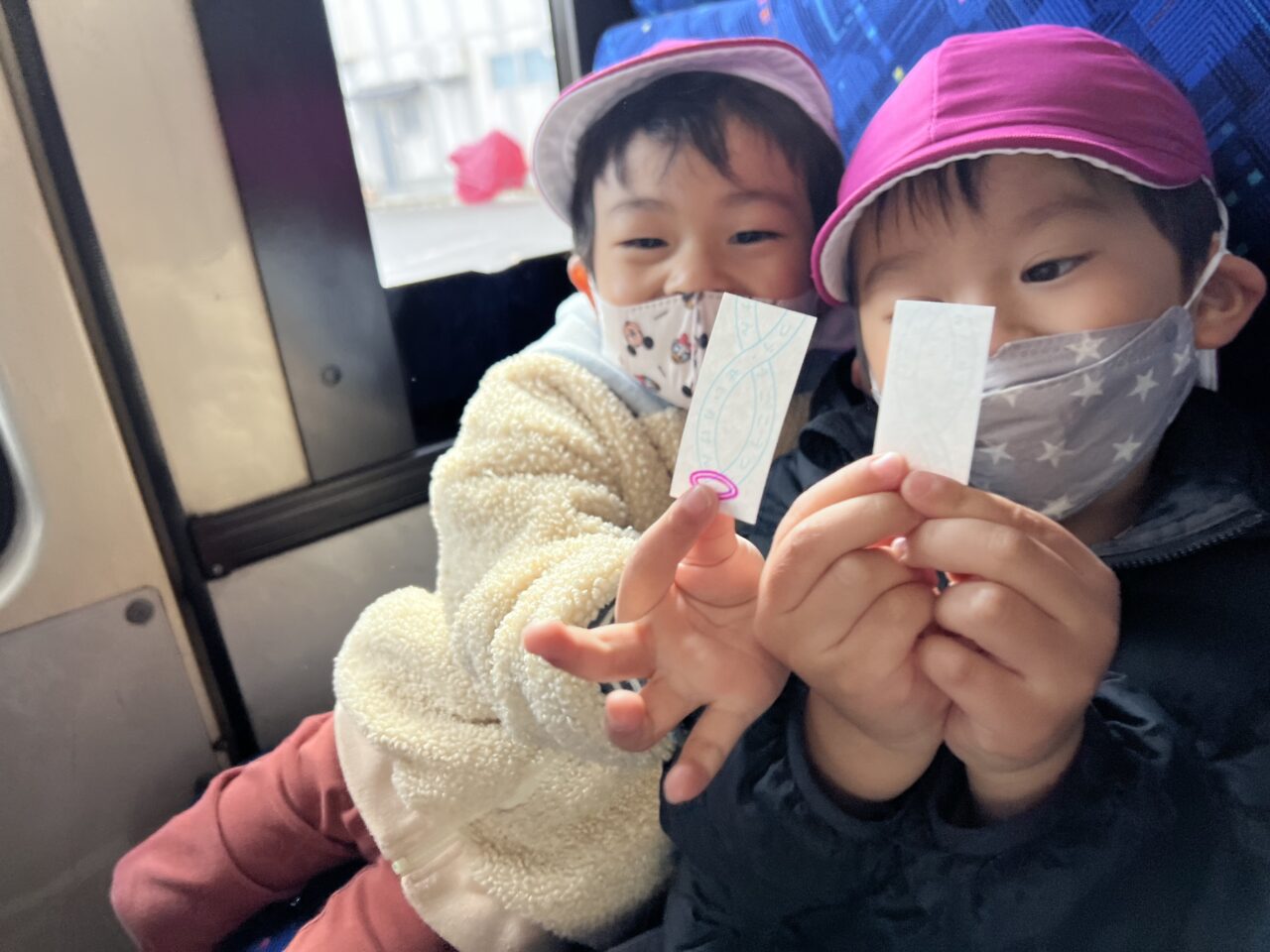 子どもたち、バスに乗れるのでルンルンです?