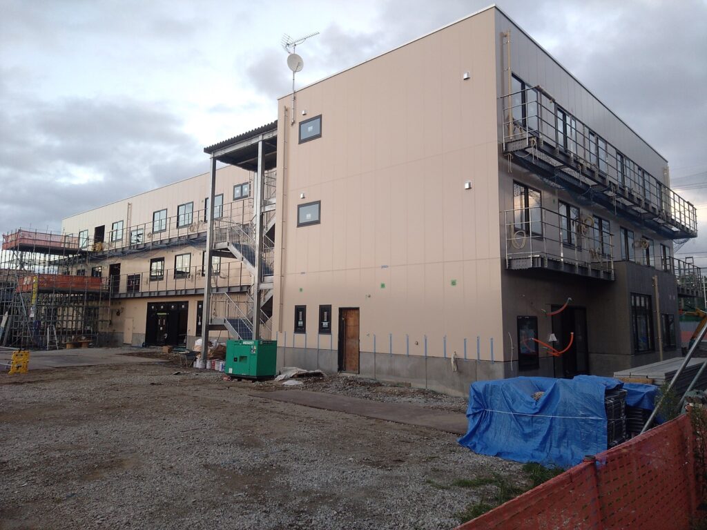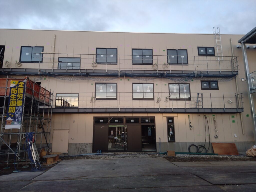 現在の進捗状況はというと、足場も外れ外壁も仕上がり、だいぶ建物らしくなってきました。