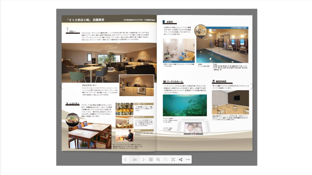 「昨日までなかった介護」をコンセプトに従来の施設とは一味違ったロビーや360度のVR映像を導入したバーチャルルーム、