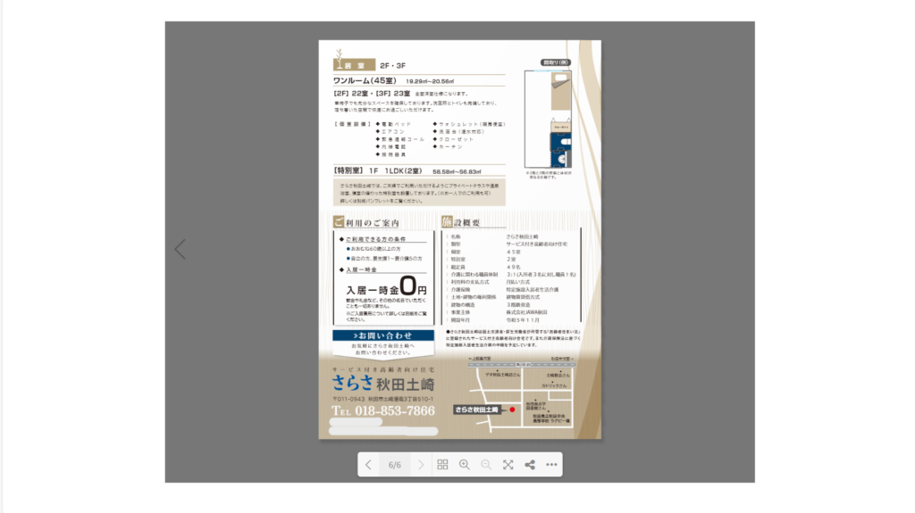 パンフレットご希望の場合は、さらさ秋田土崎の申込フォームまたは電話(0182-23-8432)にてお問い合わせください。
