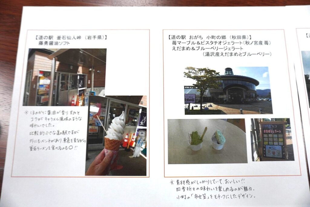 食べたソフトクリームのコメントの他、行った道の駅の特徴やおすすめも記載しています!