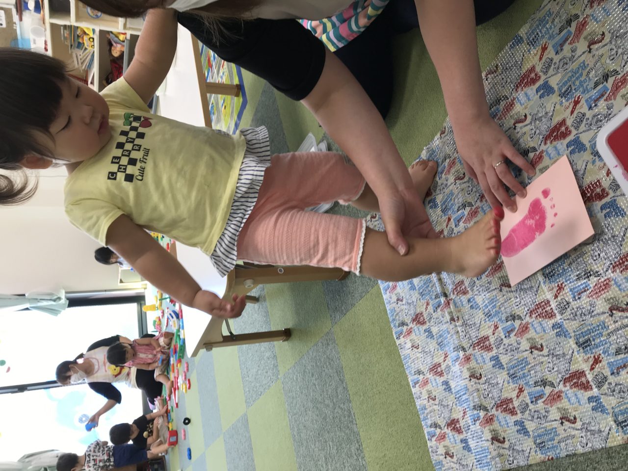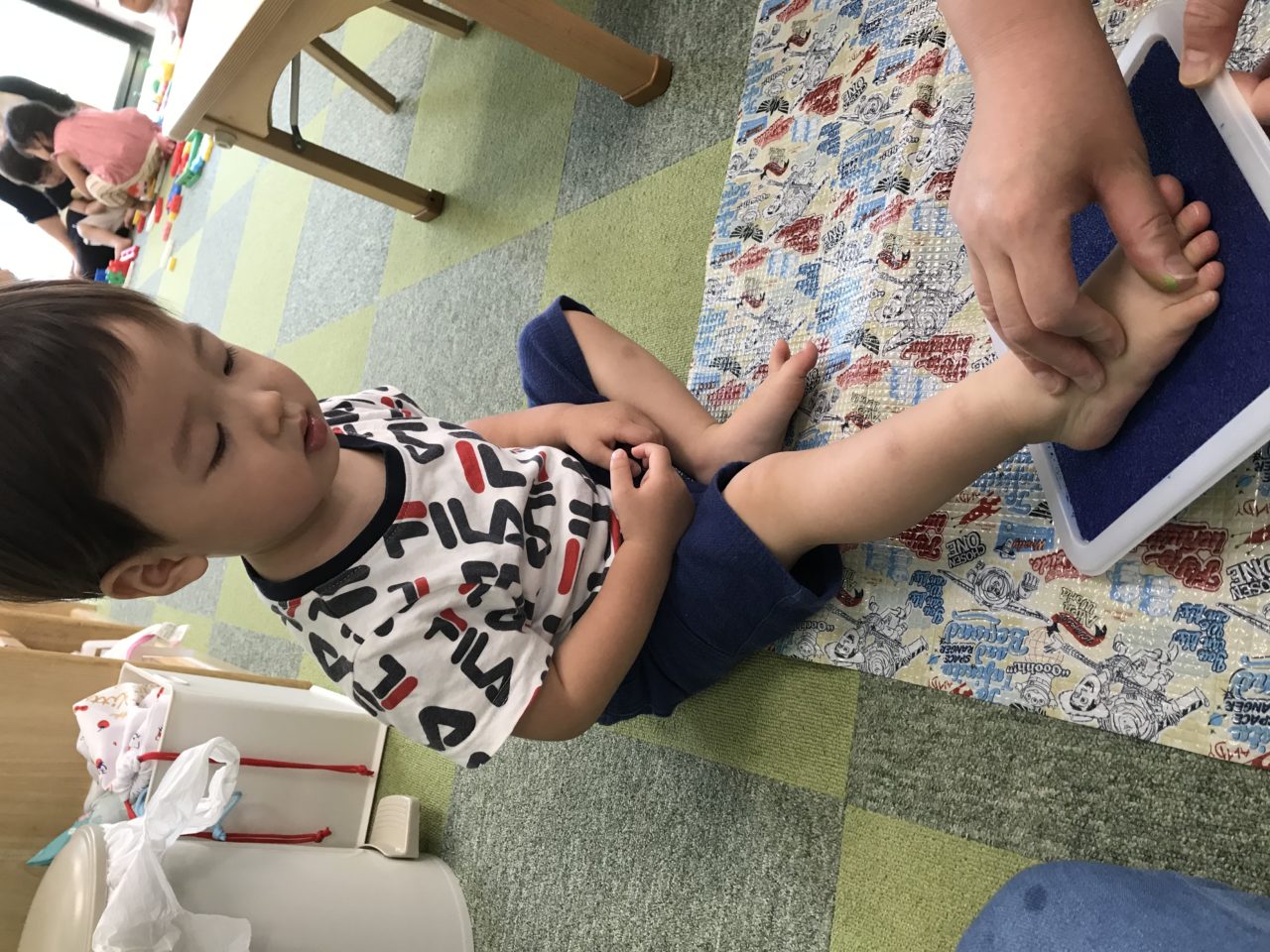 今度は子ども達の可愛い足型?をぺったんととりました☺️何に変身するのかワクワク?お友達と「楽しみ楽しみ〜」と盛り上がっていました✨