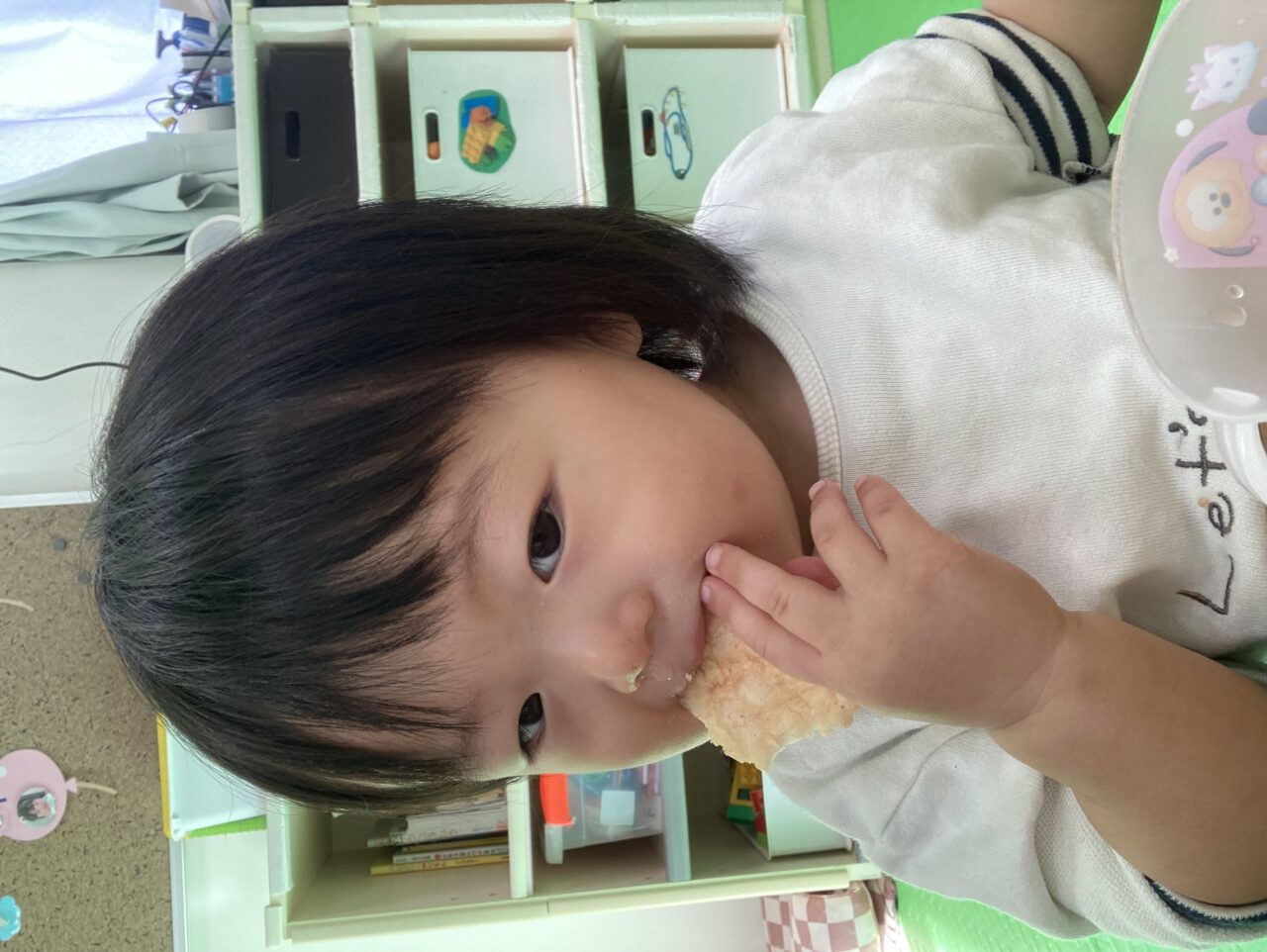クッキングをする前に腹ごしらえ?煎餅を食べました?