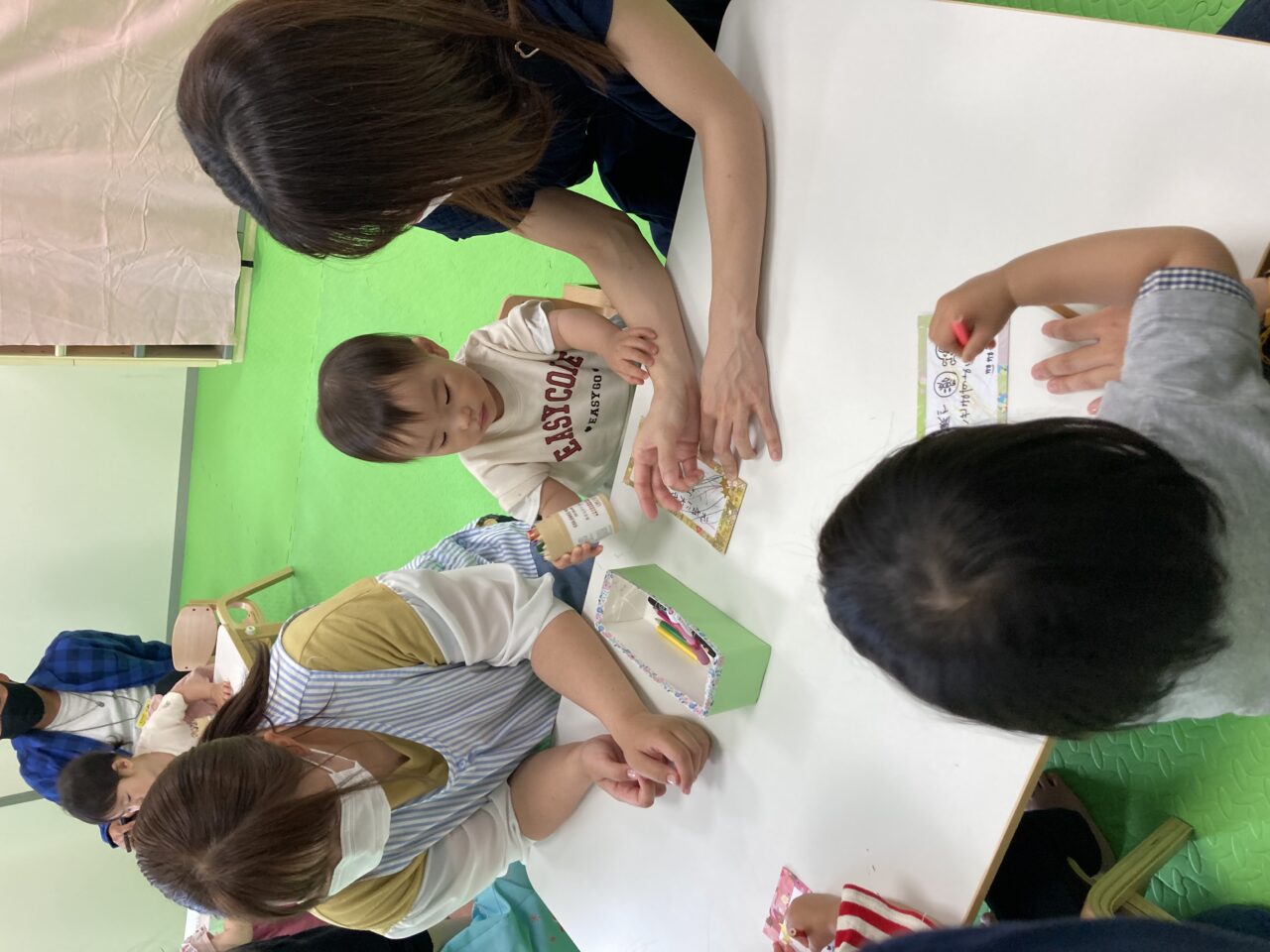 1、2歳児にじそら組は七夕にむけて、短冊に?お家の方と願い事を書いたり、模様をつけたりと自由に色鉛筆で✏️でぬりぬり?はりきって描いてくれました!