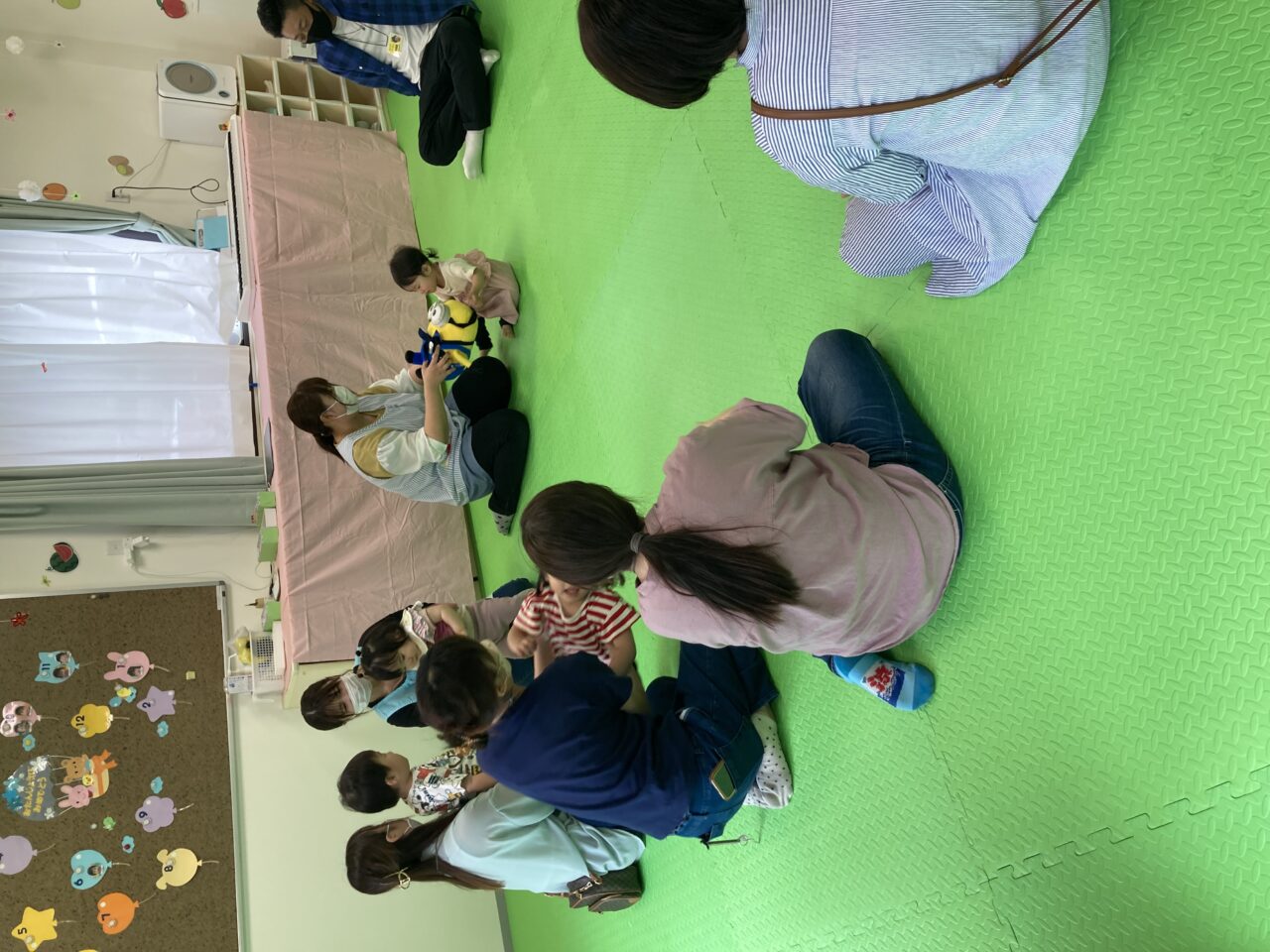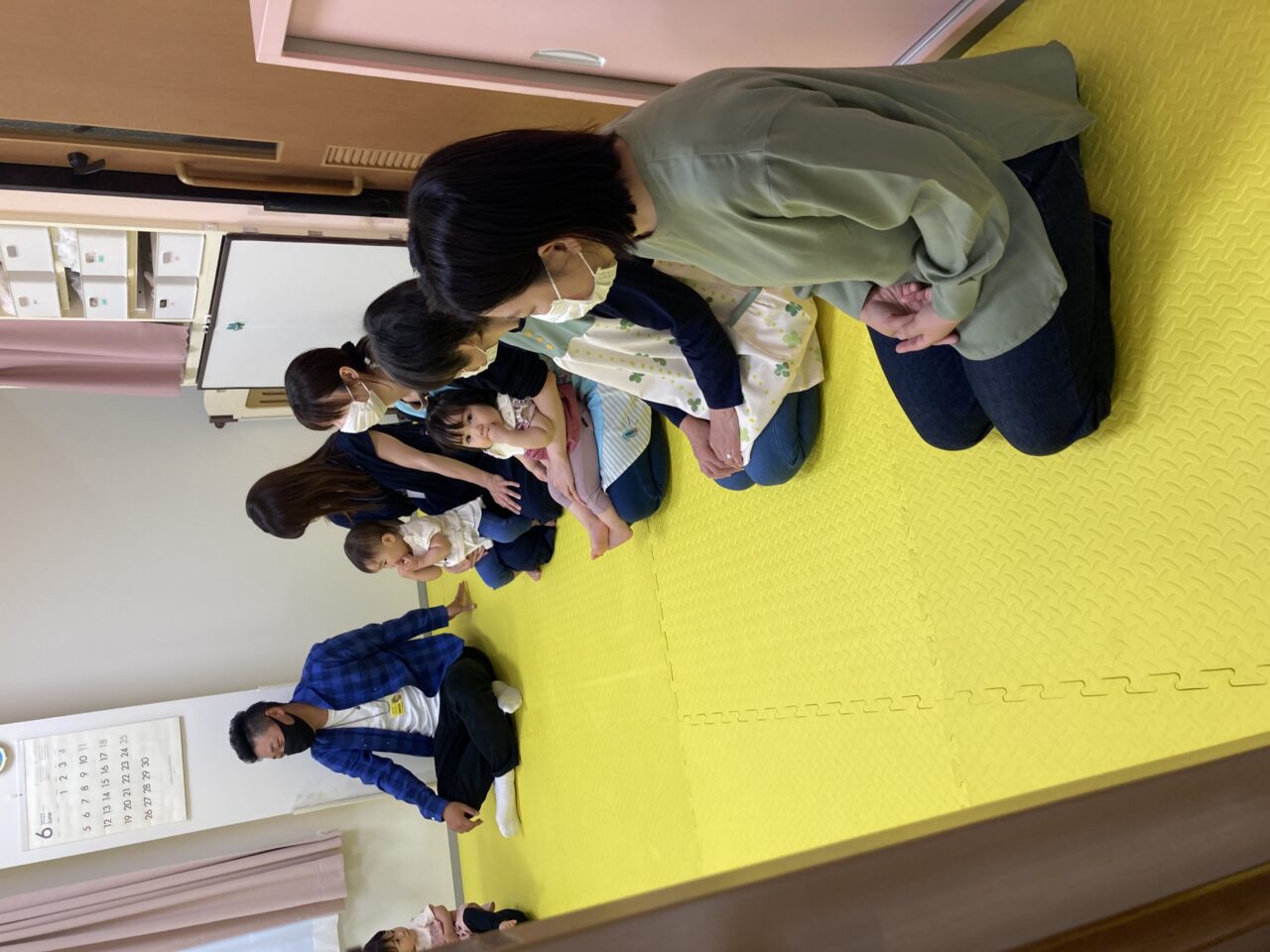 ふれあい遊びもしました。「いっぽんばしこちょこちょ」「ラララ♪エプロン」「動物たちの山登り??」の歌に合わせて楽しみました?くすぐったさから、キャッキャ声を出して笑い、とても賑やかな時間となりました?