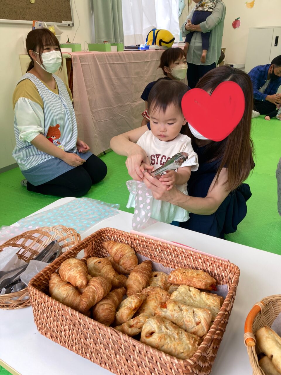 参観の最後に、きらきらベーカリーでパン???のお土産です♪「美味しそう」とにこにこの笑顔でした(笑)
