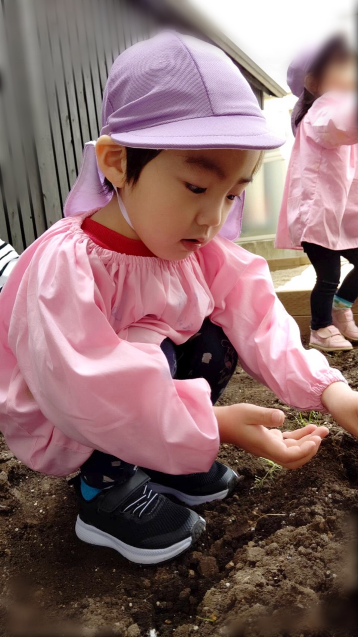 じつは、きらきら保育園秋田駅前にも畑があり春に「小松菜」「枝豆」「かぶ」の種をまいていました?