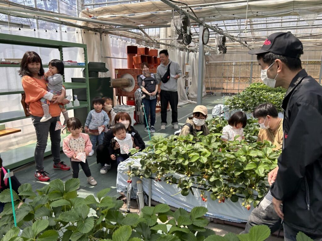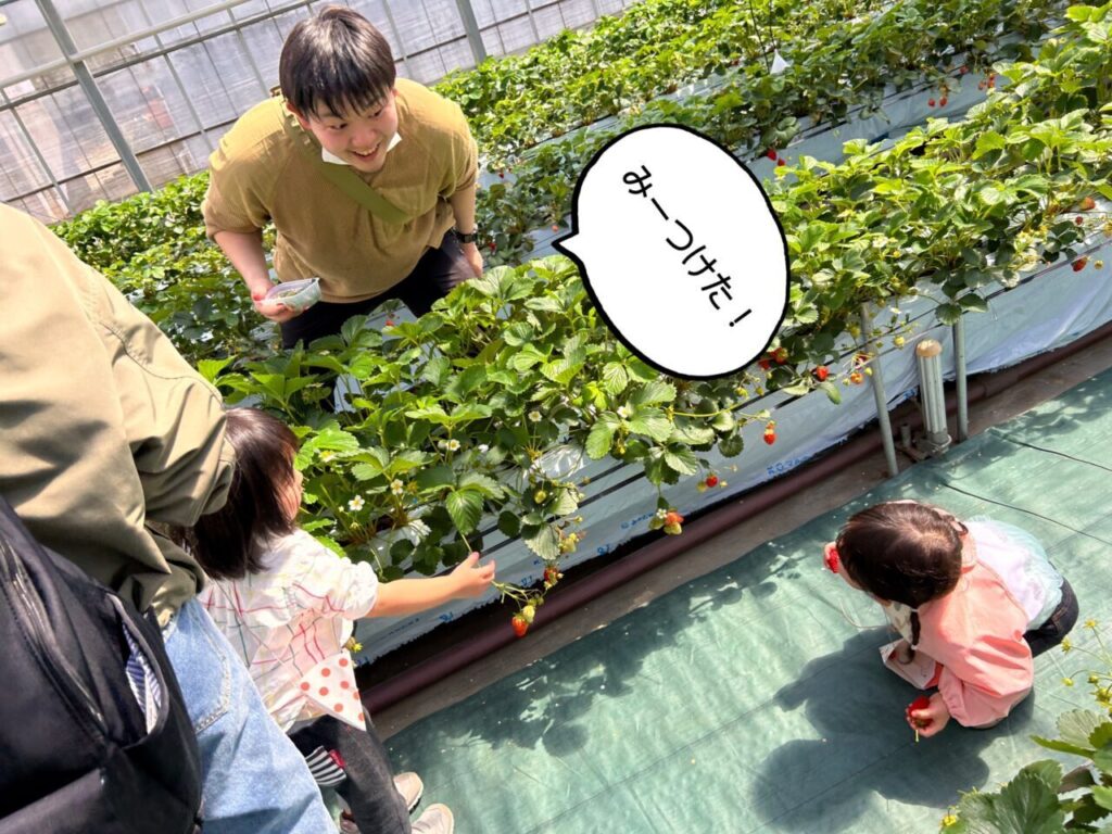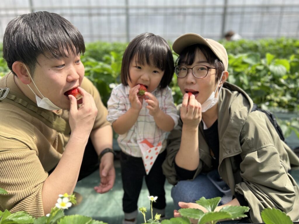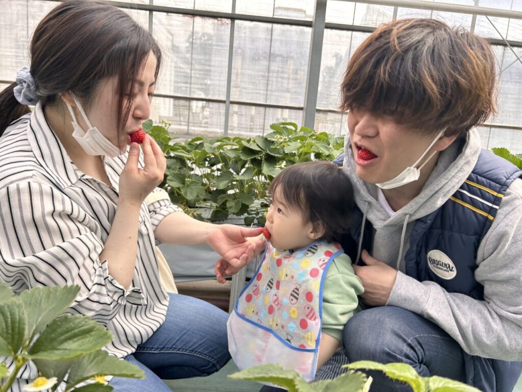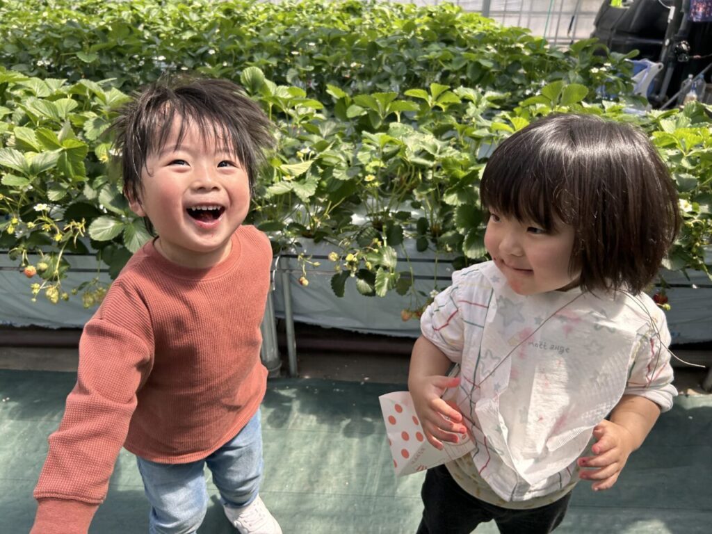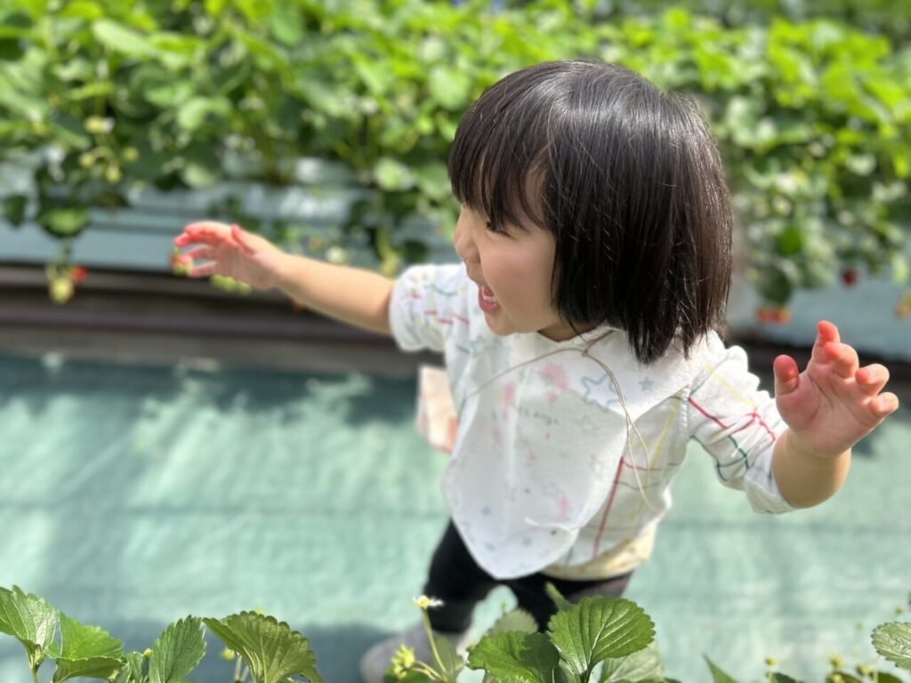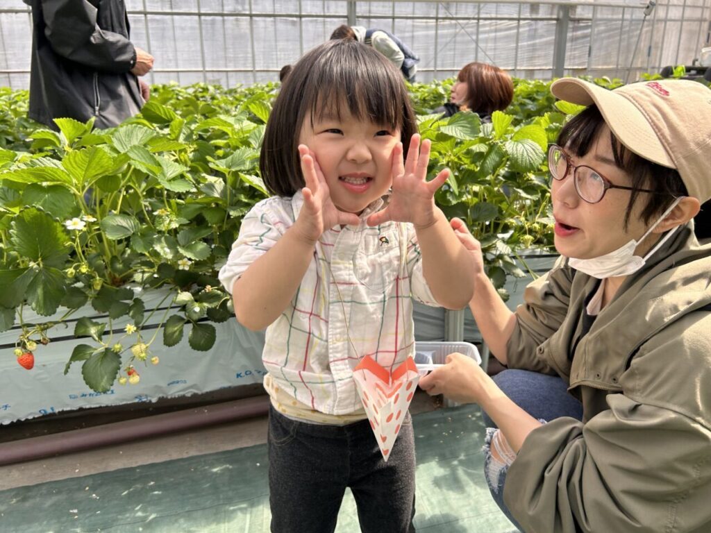 きらきら保育園としていちご狩りは初めての行事となりましたが、美味しそうに食べている子ども達の笑顔や、保護者の方々との微笑ましい姿も見ることができて、保育士一同、開催できてよかったなと感じています。