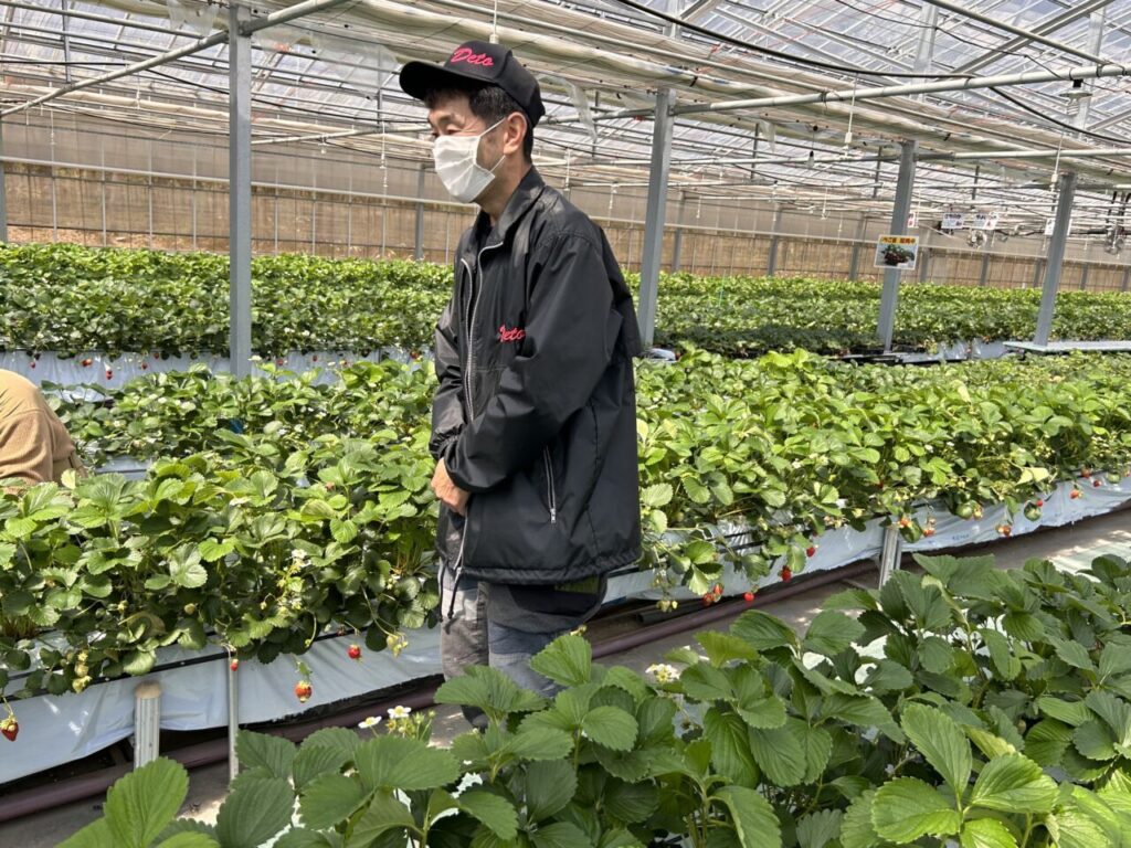 いちごへの気持ちが高まった後は、ハウスに移動しておじさんからのお話を聞きましたよ?