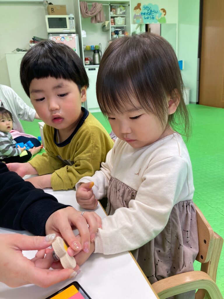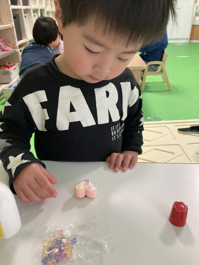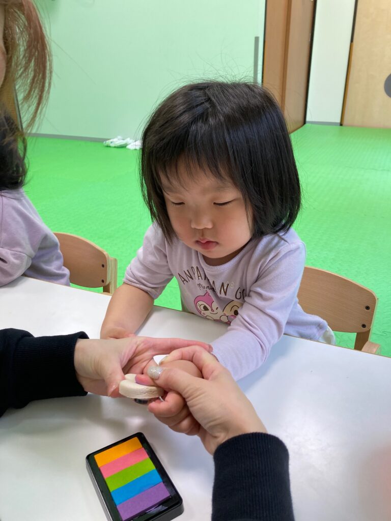 もう1つには、子どもたちの指で指ハート❤️をイメージして作って見ました。