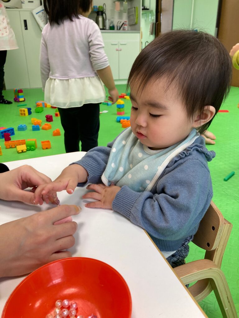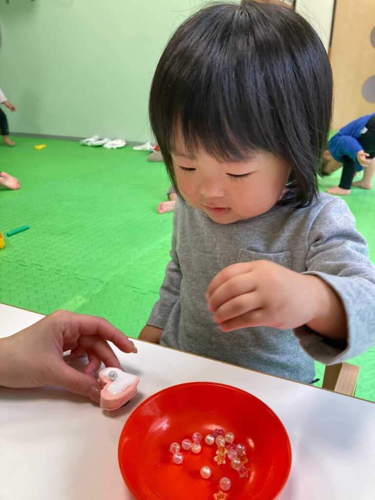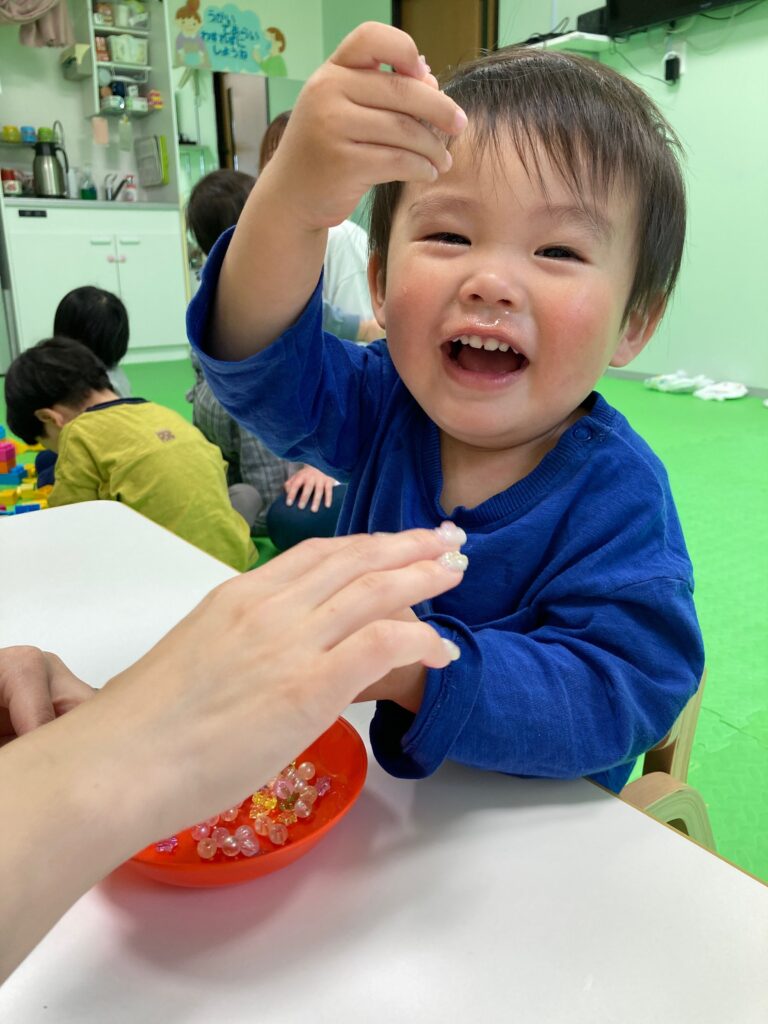 1つは、好きなビーズを選んでマグネットに飾りつけをしました。