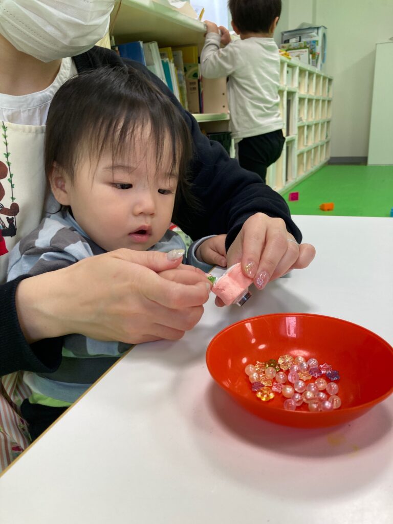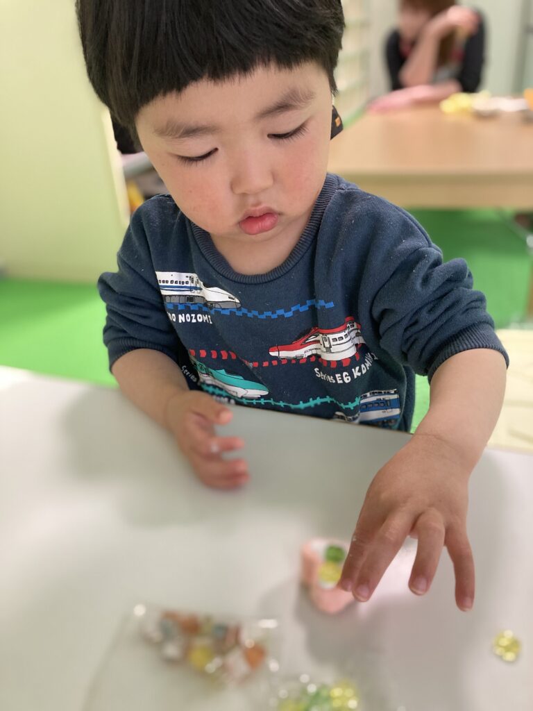 色を選んだり、ビーズを選びながら大好きなお母さんの顔を思い出して完成させていた子ども達です。