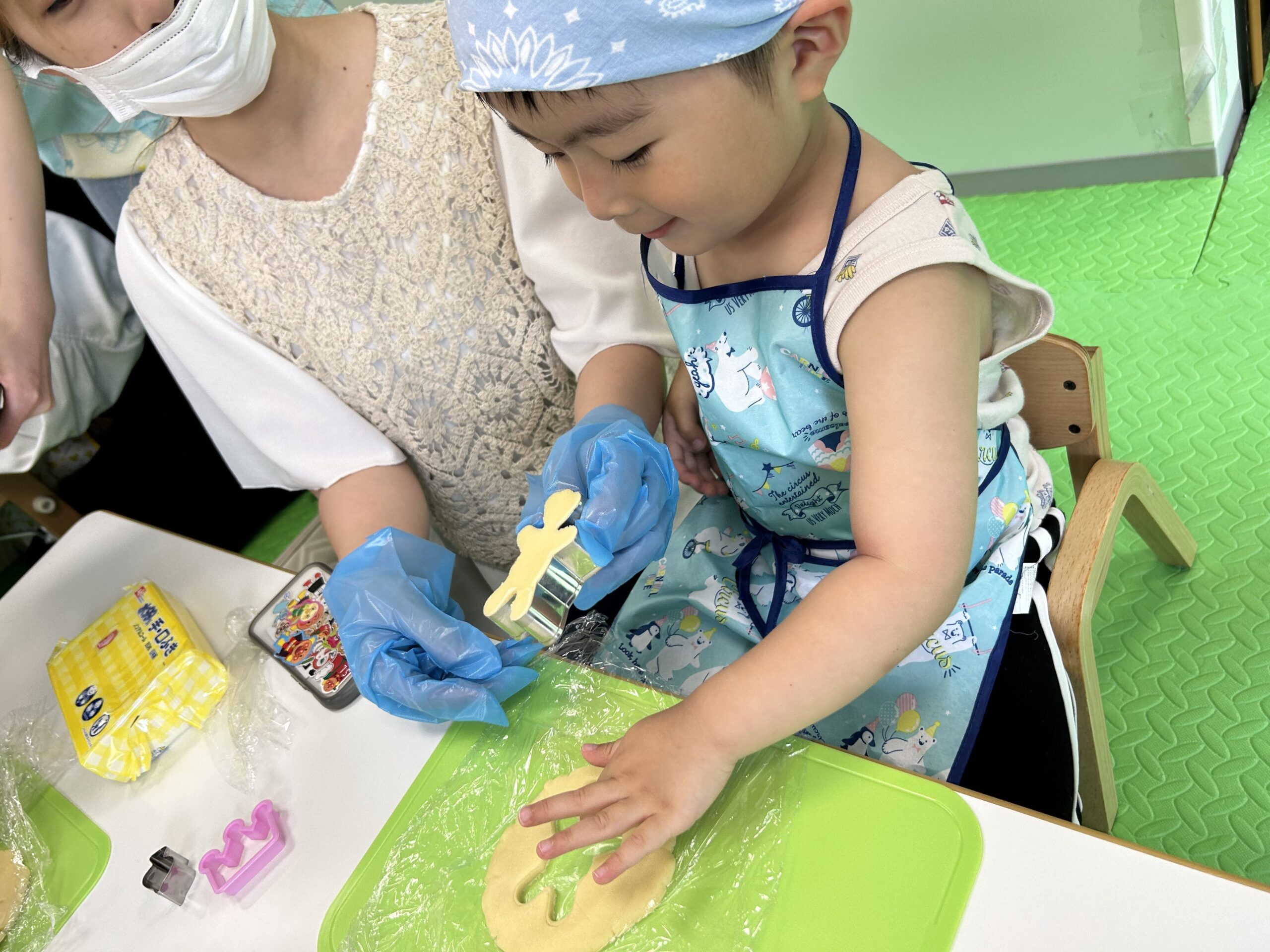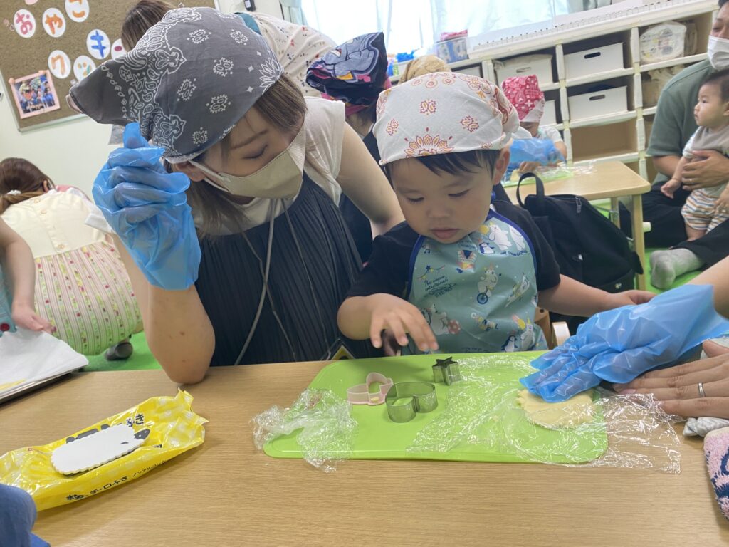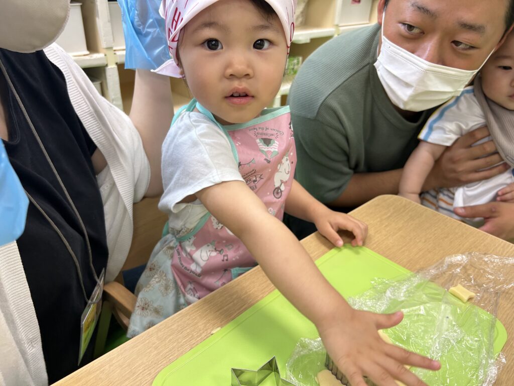 クマや星などの型を、お父さんお母さんに手伝ってもらいながら、一生懸命やってくれました?