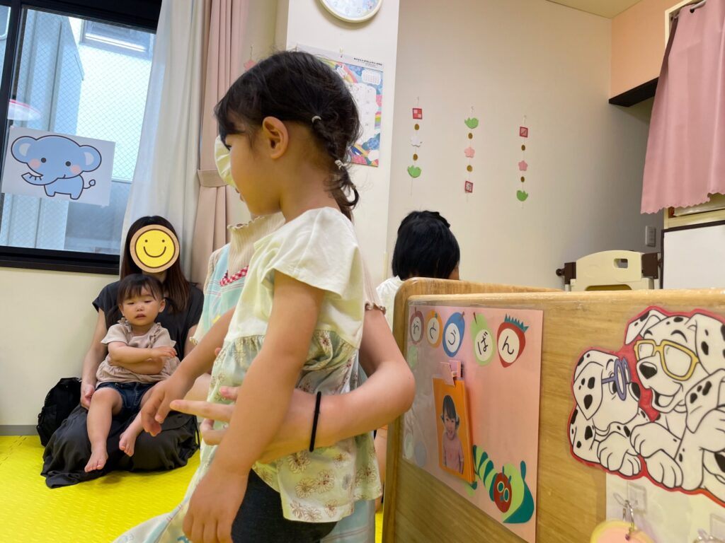 2歳児さんは朝のあいさつや歌などのきっかけの挨拶をしてくれるお当番さんを、毎日かわりばんこでやってくれています!
