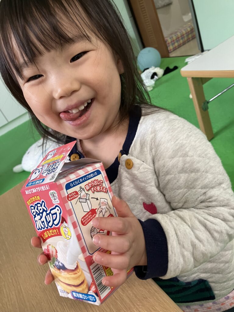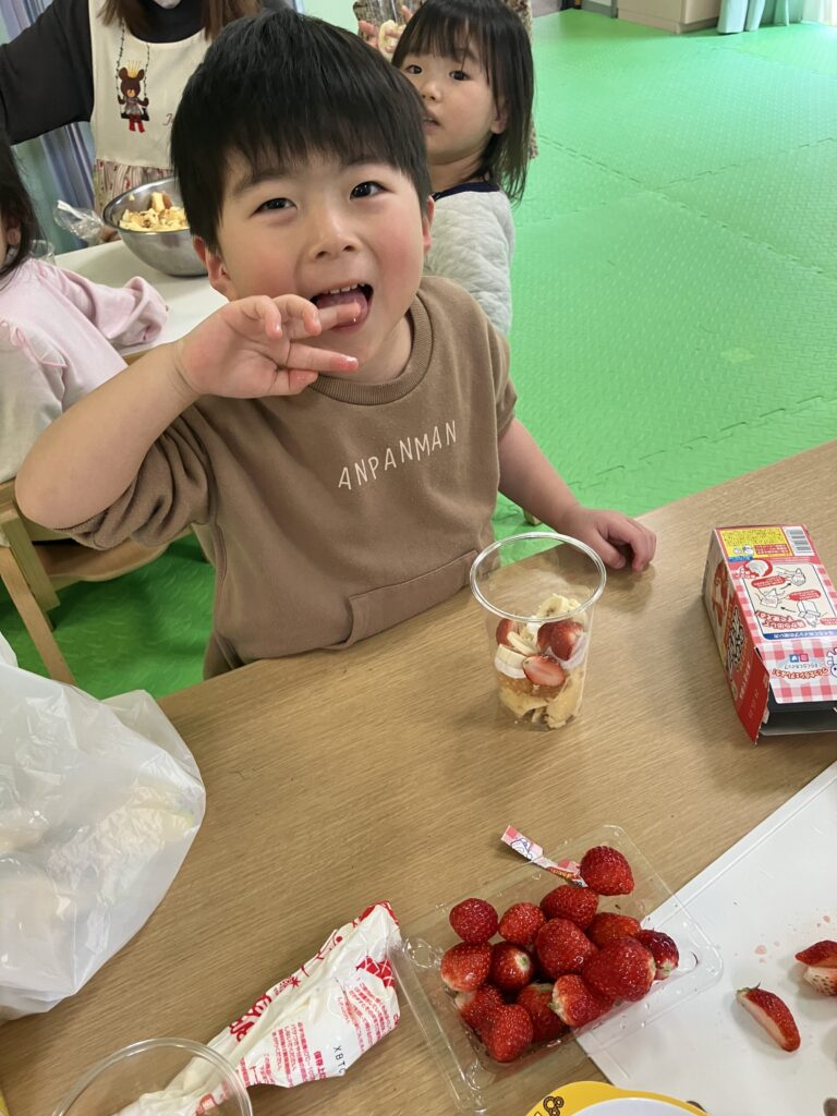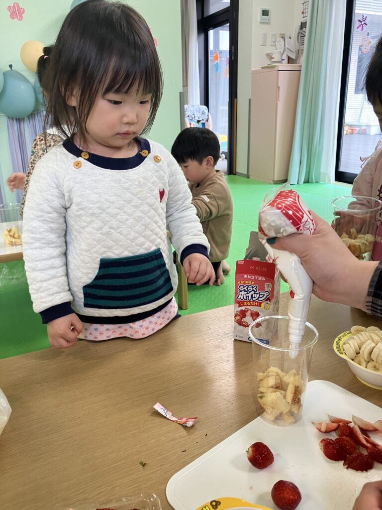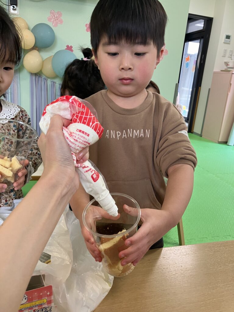 ?と?と生クリームでデコレーションして、自分達でオリジナルのパフェが完成しました✨