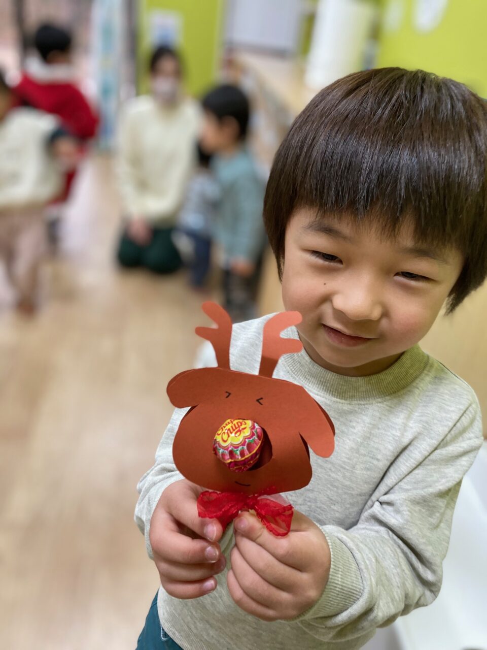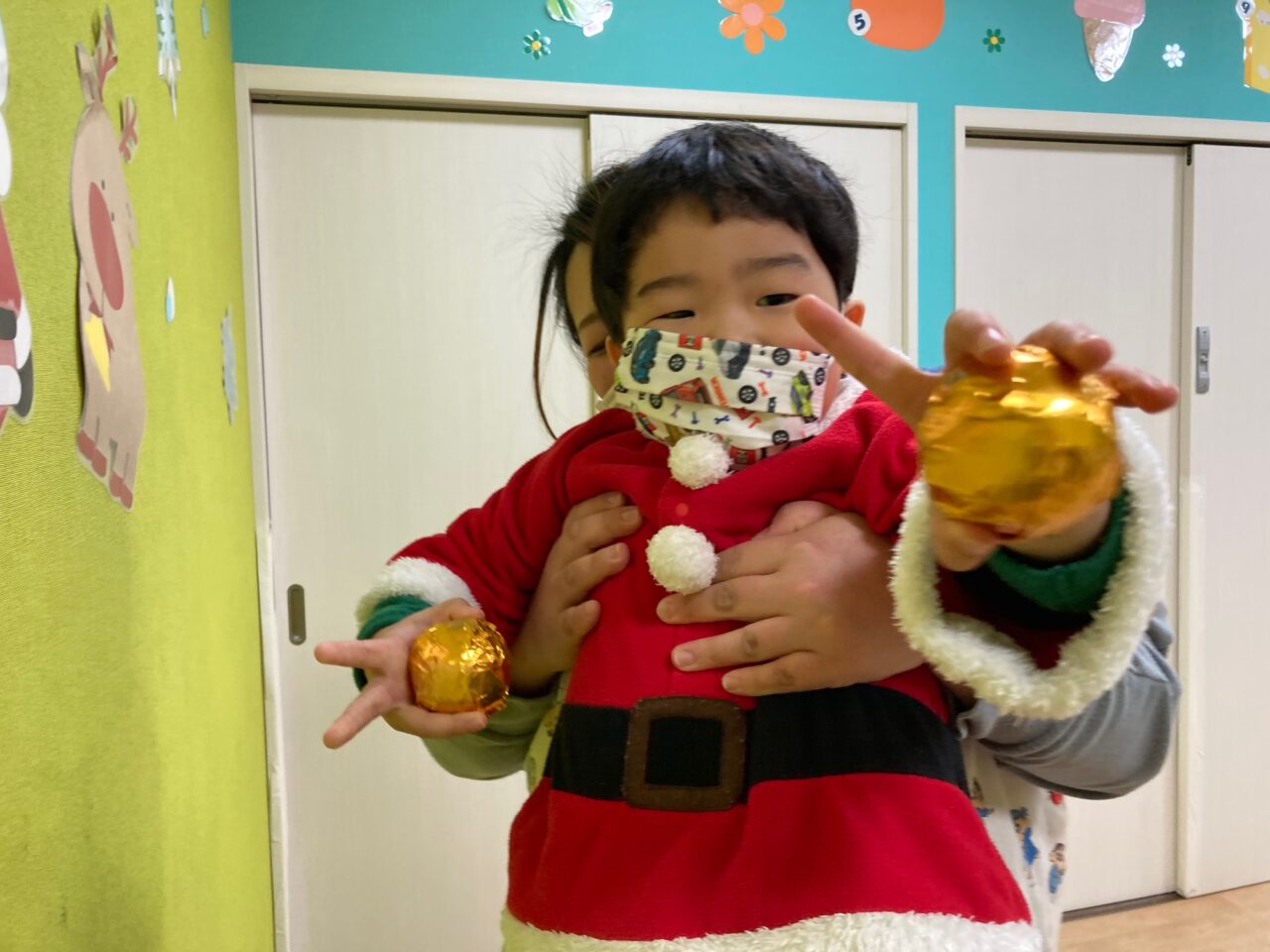 サンタ帽子のお菓子やトナカイキャンディをもらってとっても嬉しそうなきらきらっ子でした?