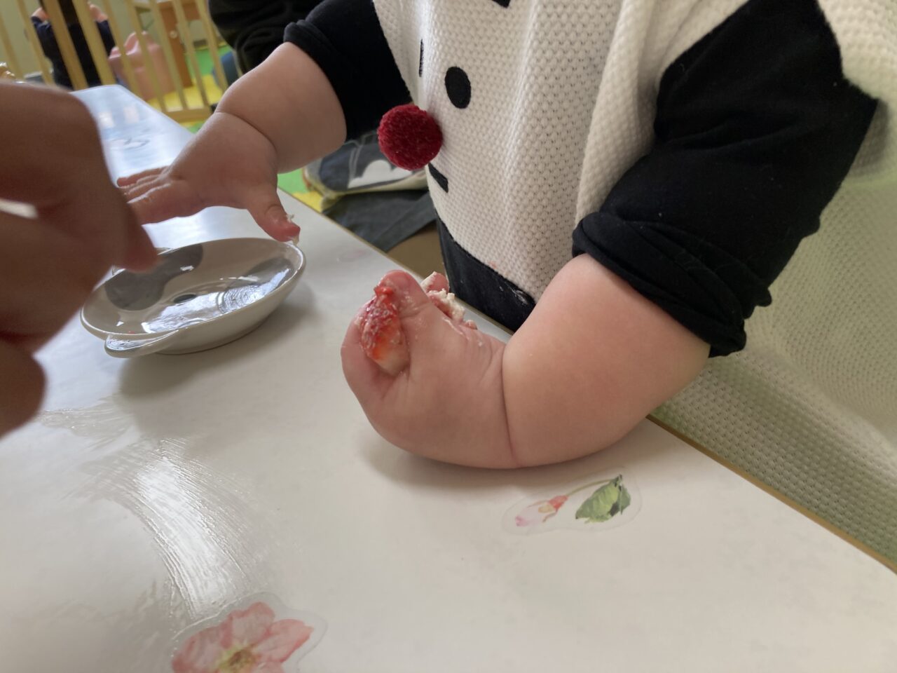 再び大きなイチゴをしっかりと握りしめたまま、誕生会が終わり、お父さん、お母さんと一緒に退場してくれました☺️?