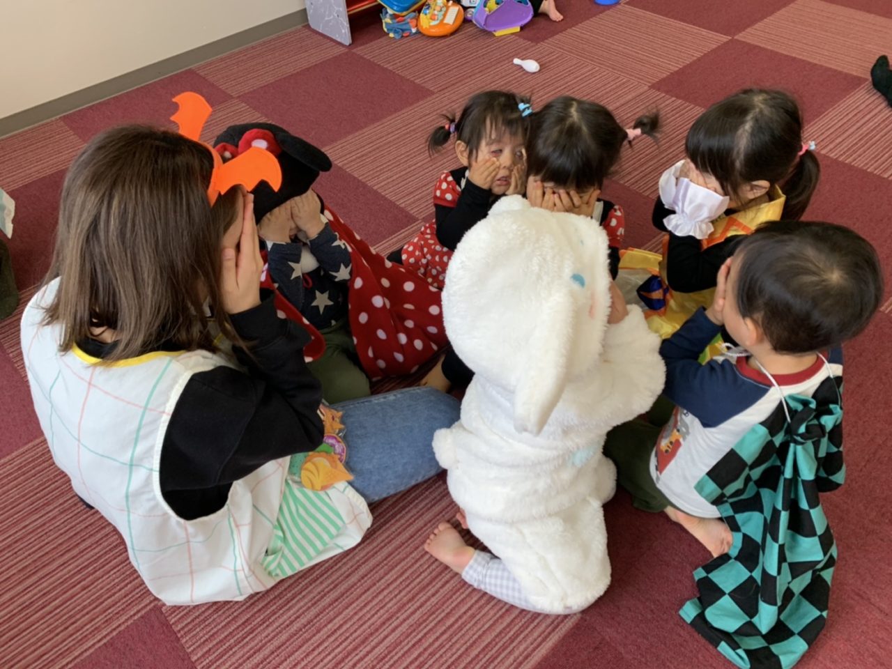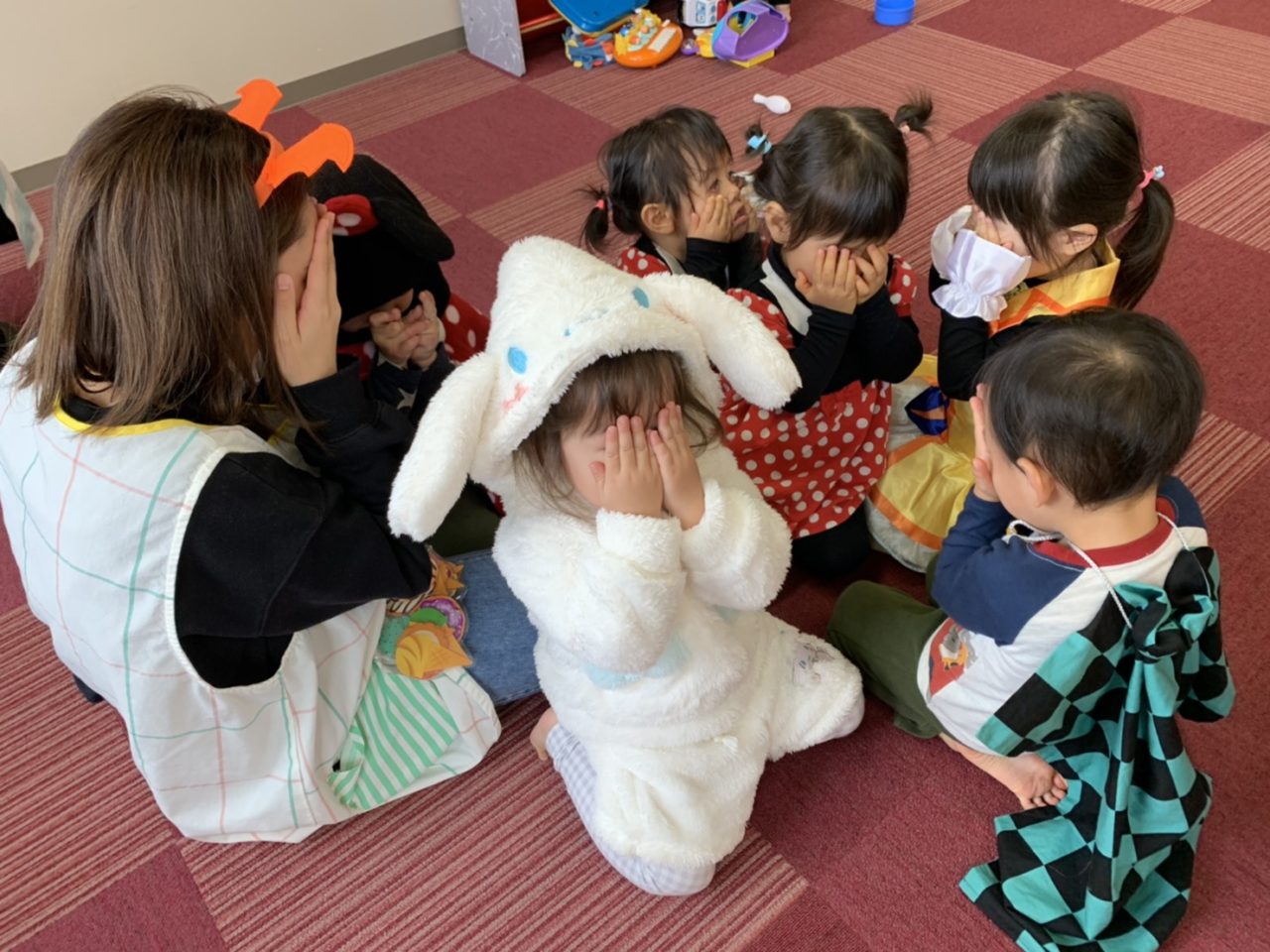 子どもたちの仮装した姿はもちろんですが、みんなで集まって顔を小さな手で隠している姿にキュンキュン💓です🥰🥰